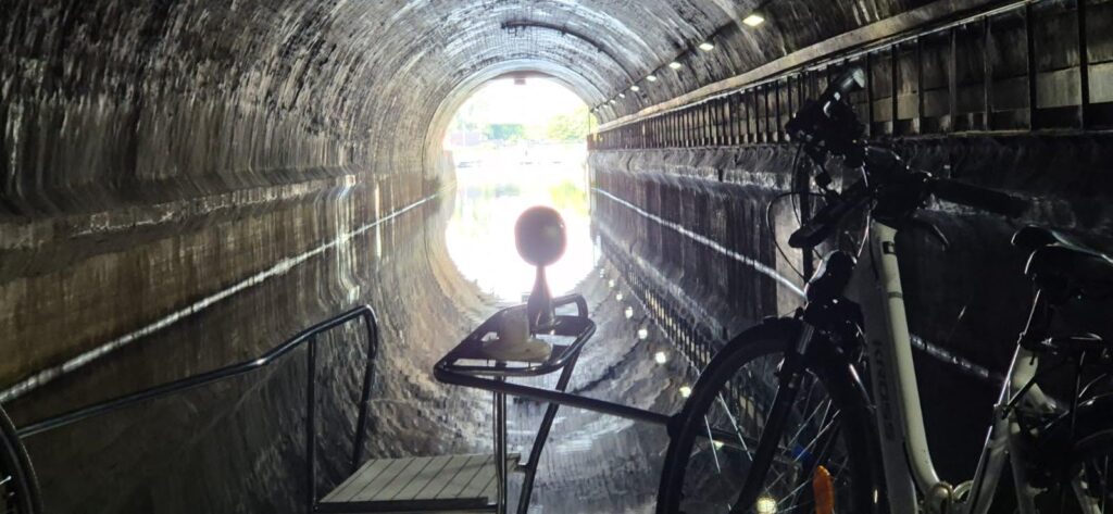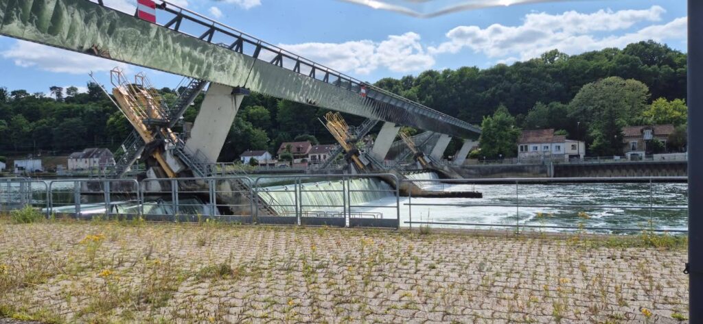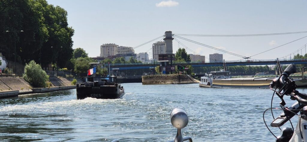 Dzisiejszy odcinek jest początkowo mało atrakcyjny, płyniemy przedmieściami Paryża więc ładnie nie jest. Tunel oraz wszystkie śluzy są na telefon, na dwóch czy trzech widzą nas w kamerach więc sami otwierają. Wszystkie są bardzo duże, przystosowane do ruchu komercyjnego i śluzowanie trwa długo. Do komory spokojnie wchodzą trzy duże barki. Przeżywamy chwile grozy bowiem nawigacja informuje nas, że ostatnia śluza zaplanowana na dzisiaj strajkuje i będzie nieczynna do 23 czerwca. Taki sam komunikat widnieje w aplikacji VNF. W centrali informują nas, że dla ruchu turystycznego śluza działa. I to prawda, przechodzimy bez problemu ale i barki płynące z naprzeciwka też. Jedna błędna informacja a tyle zamieszania. Gdyby komunikat się potwierdził, musielibyśmy czekać tydzień do otwarcia, co generalnie byłoby problemem bowiem w okolicy brak sensownych portów.
