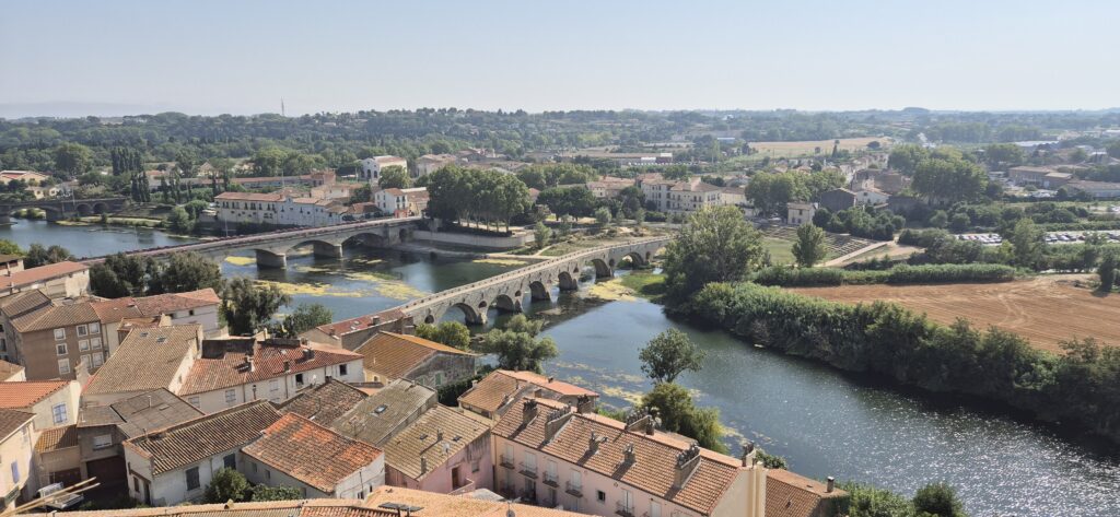 Mimo upału decydujemy się na spacer do miasta licząc, że być może znajdziemy zacienione trasy oraz miejsca do odpoczynku. W kapitanacie otrzymujemy mapkę z atrakcjami miasta a resztę podpowiada nam AI. Bezeries to jedno z najstarszych miast Francji. Jego historia sięga ponad 2700 lat wstecz co czyni je starszym od Rzymu. Miasto było przez wieki ważnym punktem handlowym. W 1209 r miała tu miejsce krwawa maskara podczas krucjaty przeciwko katarom. Ludność, która schroniła się w kościele została żywcem spalona. W kolejnych wiekach rozkwitało dzięki produkcji wina oraz bliskości kanału do Midi.