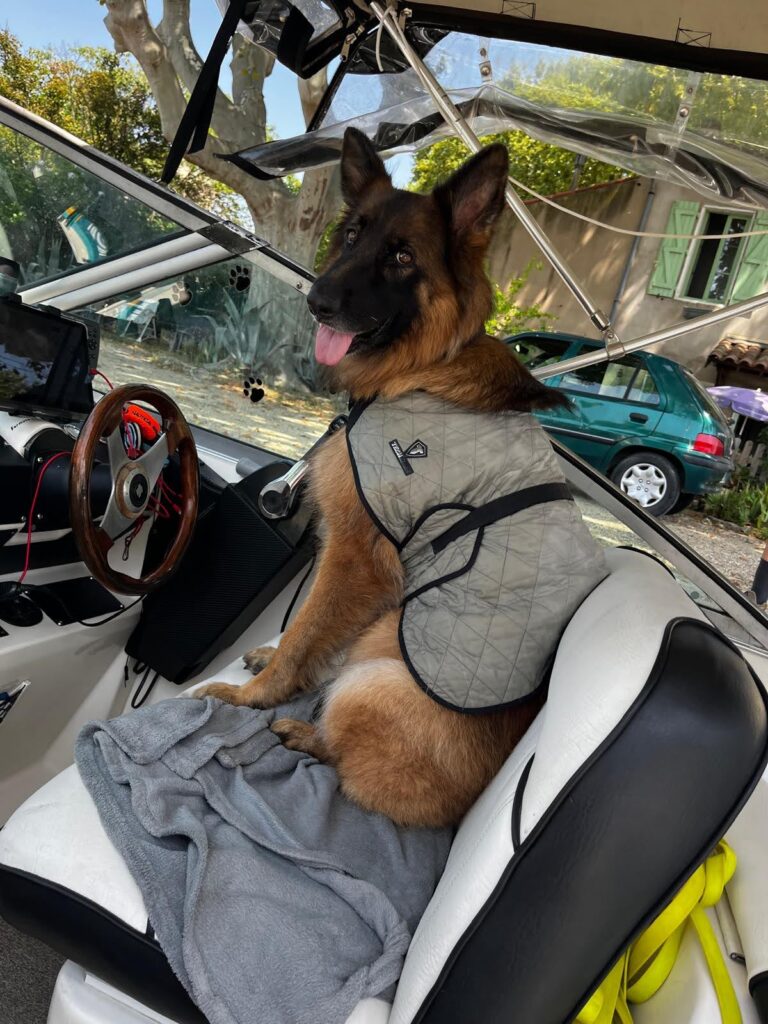 Jest bardzo gorąco, w południe temperatura sięga 38 stopni więc praktycznie cały dzień psy spędzają w kamizelkach chłodzących. Drużyna rodem z Japonii wykazuje na początku spore obawy przed wejściem na pokład ostatecznie jednak decydują się zaszczycić nas swoją obecnością.. Ajra jako psi gospodarz zostaje pozbawiona dostępu do swojej kanapy i wydaje się być niezbyt szczęśliwa z tego powodu. W porcie w Bezeries cumujemy o 14.30. W zasadzie nie jest to port tylko halte fiuviale przy nabrzeżu. Jest dostęp do wody i prądu aczkolwiek limitowany bo prądu przysługuje nam 10 kWh, wody 300l a kosztowało nas to 21 e. Może tutaj stanąć kilkanaście łodzi ale przyłącza nie są na całej długości nabrzeża.