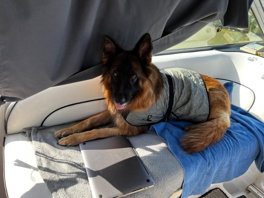Google oraz Windy zgodnie prognozują na najbliższe dni nadal temperatury na poziomie 42 stopni. Trudno nam się przystosować do takich ekstremalnych temperatur, psy od rana są w kamizelkach moczonych kilkakrotnie w ciągu dnia. Wypijamy ogromne ilości napojów.