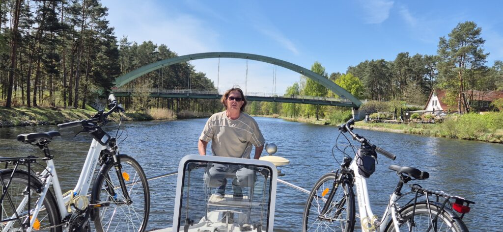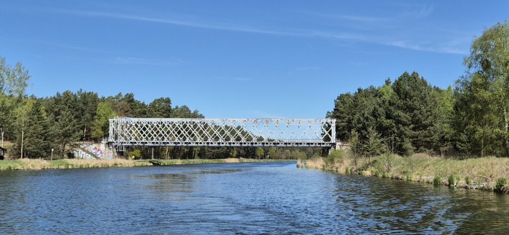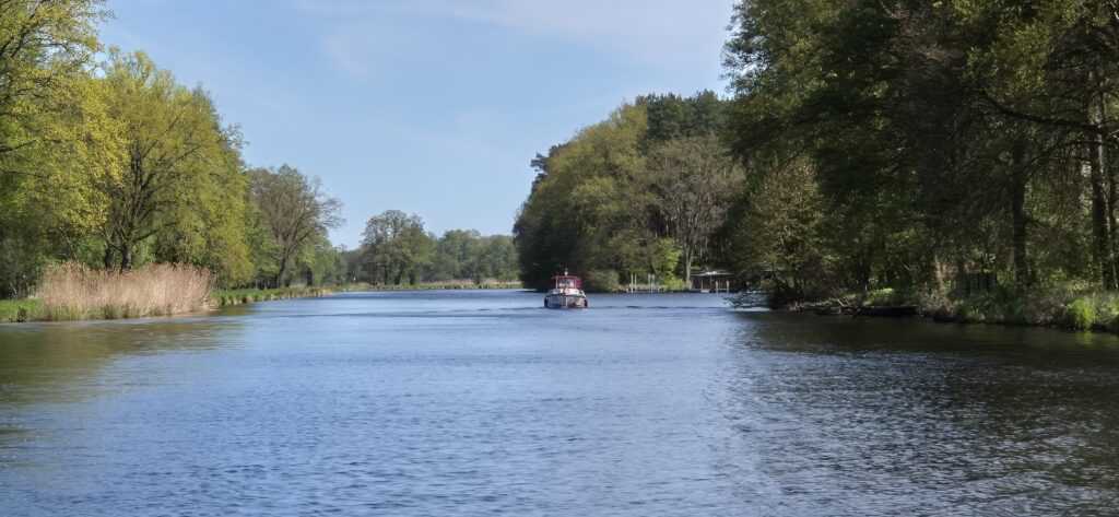 Idziemy na Berlin – jak powiedzieli tak zrobili. Wypływamy z Marienwerder o godzinie 9 bowiem przed nami kolejna śluza i nie sposób ustalić ile czasu zajmie nam przeprawa. Cały czas płyniemy kanałem Odra-Hawela. Jest bardzo malowniczy, płynie wśród lasów. Wzdłuż kanału biegnie stary trakt holowniczy, który został przekształcony w ścieżkę pieszo – rowerową bardzo chętnie wykorzystywaną przez mieszkańców i turystów.
