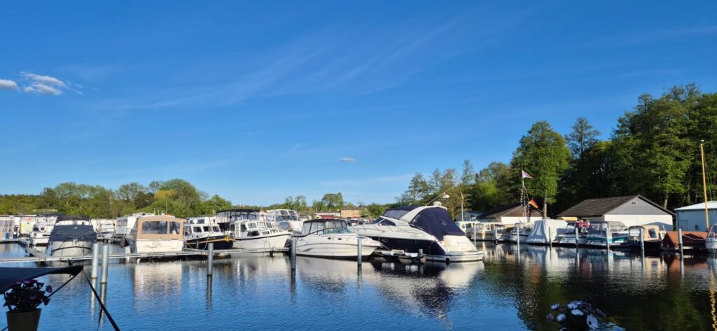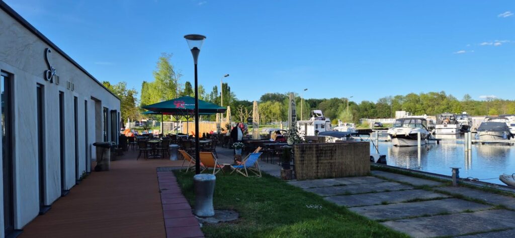 Próbujemy dodzwonić się do mariny, w której zaplanowaliśmy postój, udaje się po kilku próbach i cóż trzeba szukać innego miejsca bowiem tam stać nie możemy. Tym sposobem trafiamy na miejską marinę Hafen Hennigsdorf. Na terenie portu działa mała restauracja, są czyste sanitariaty i prąd na słupkach. Tuż obok portu jest mały park a do stacji kolejowej mamy 5 minut. Jest to miejska marina a tuż obok, oddzielona kanałem znajduje się kolejna EWV w którą celowaliśmy. Jest zamknięta i sezon w niej jeszcze się nie zaczął. W naszym porcie przyjmuje nas przesympatyczny hafenmeister (po naszemu bosman). Sanitariaty zamykane na kluczyk są bardzo nowoczesne i czyste. Jeden kluczyk obsługuje wszystko: bramkę na pomost, bramkę na teren portu oraz sanitariaty. Cena za postój wynosi 25,5e za dobę, w cenie mamy prąd, wodę, sanitariaty.