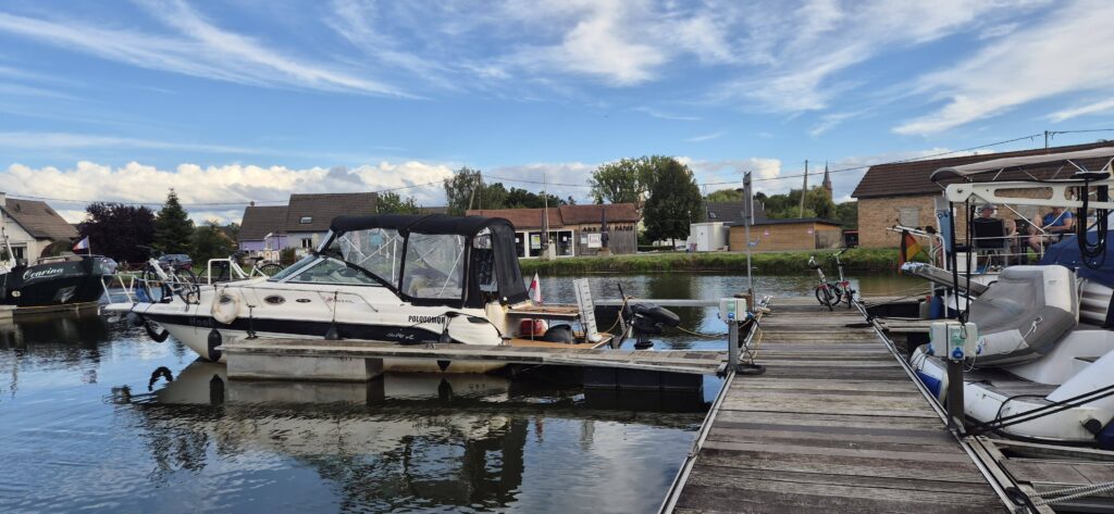 Kolejne cztery śluzy położone są w nieco większych względem siebie odległościach. Na ostatniej wita nas Pani Kapitan zarządzająca portem i od razu wskazuje miejsce cumowania posługując się sprawnie angielskim. Port jest kameralny choć niemały, ma prąd, wodę i kosztuje zaledwie 15e.