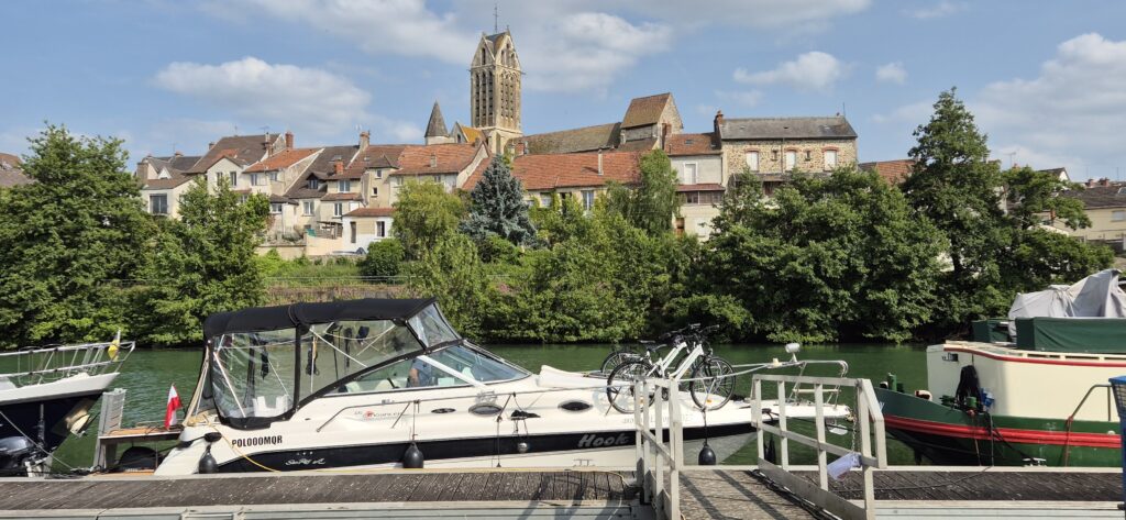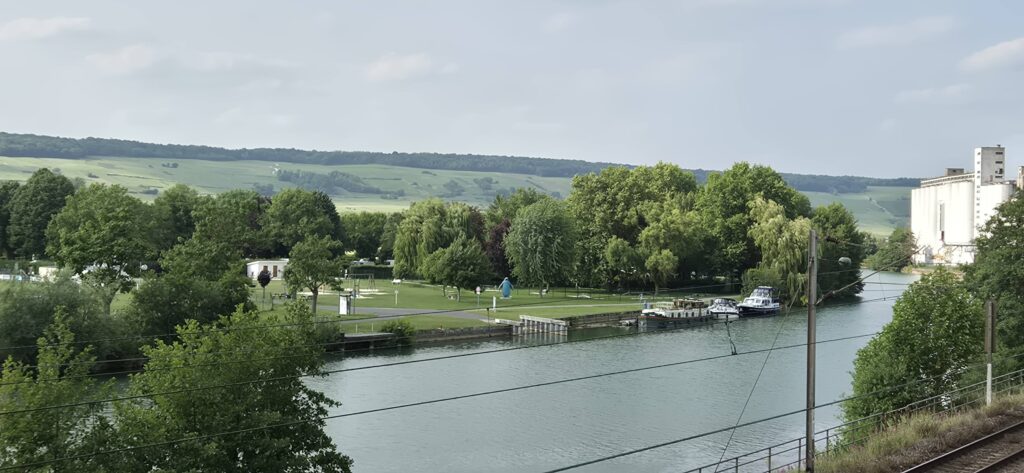 Cumujemy w małym miasteczku Dormans na halte fluviale. Udaje nam się stanąć na ostatnim wolnym miejscu ale dosłownie na gazetę między dużym jachtem a barką. Mamy prąd i wodę za jedyne 14,4 e. Miejsce postojowe znajduje się na terenie pola campingowego, teren jest bardzo zadbany są ławki, stoliki, plac zbaw. Gdybyśmy mieli ochotę możemy nawet zgrać w minigolfa lub pójść na basen. Nie mamy.