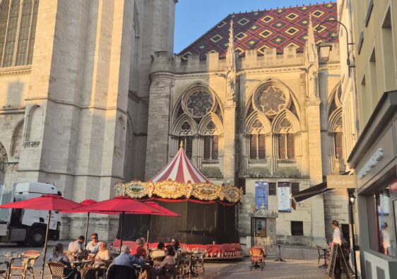 We Francji wbrew pozorom nie tak łatwo jest zjeść coś w restauracji. Mamy problem już trzeci dzień. Albo serwują od 19, jak w Reims albo nie ma w ogóle restauracji jak wczoraj albo jest poniedziałek, jak dzisiaj i wszystkie restauracje są pozamykane. Udaje nam się znaleźć jedynie małą pizzerię specjalizującą się raczej w dowozach ale ma dwa mikro stoliki więc zamawiamy. Pizze są duże, z zamówionych dwóch jemy jedną a resztę pakujemy na wynos. Majtek ma jutro wolne w kuchni.
