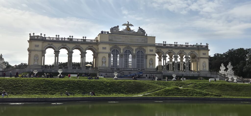 Na wzgórzu nad pałacem stoi monumentalna Glorietta – pawilon wzniesiony w 1775 roku. Z tarasu rozciąga się spektakularny widok na cały kompleks pałacowy i panoramę Wiednia. Dawniej Glorietta służyła jako miejsce uczt i spotkań dworu, a dziś działa tam kawiarnia – można więc napić się kawy, podziwiając to samo, co niegdyś cesarze. Bilet daje nam możliwość wejścia na górny taras i zrobienia masy zdjęć (nigdy nie wiadomo, które wyjdzie najlepiej).