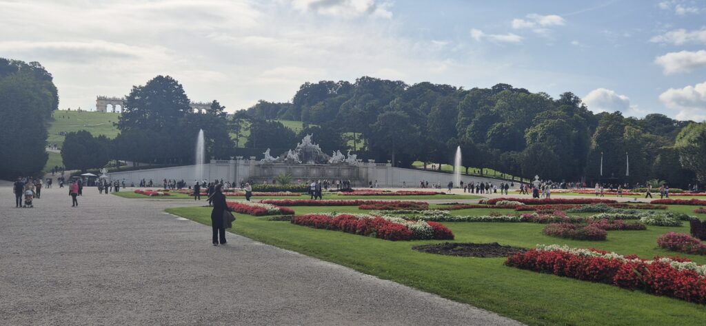 Zaczynamy od ogrodów Schönbrunn – w ramach biletu możemy obejrzeć małe, prywatne ogrody cesarskie ale te olbrzymie dostępne są bezpłatnie dla wszystkich. Spacerując alejkami, można podziwiać starannie przycięte żywopłoty, fontanny i rzeźby. Co ciekawe, w XVIII wieku ogrody także były otwarte dla mieszkańców Wiednia – Maria Teresa chciała, aby pałac był miejscem reprezentacyjnym, ale i dostępnym dla poddanych.