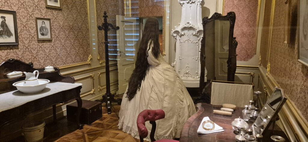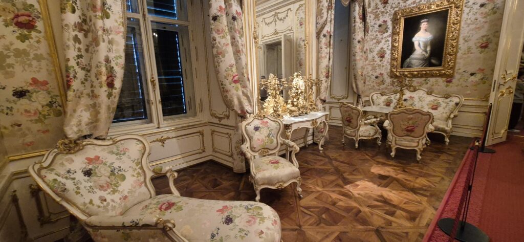 O kameralnym podziwianiu wnętrz można zapomnieć bo przez komnaty przetacza się dziki tłum. Apartamenty Franciszka Józefa są proste i skromne jak na cesarza, który mimo ogromnej władzy prowadził bardzo zdyscyplinowany tryb życia. Sypiał w żelaznym łóżku wojskowym i wstawał codziennie o 4 rano. Apartamenty Sisi są zupełnie inne w charakterze. Elżbieta kochała luksus i piękno, ale także dbała obsesyjnie o zdrowie i urodę.