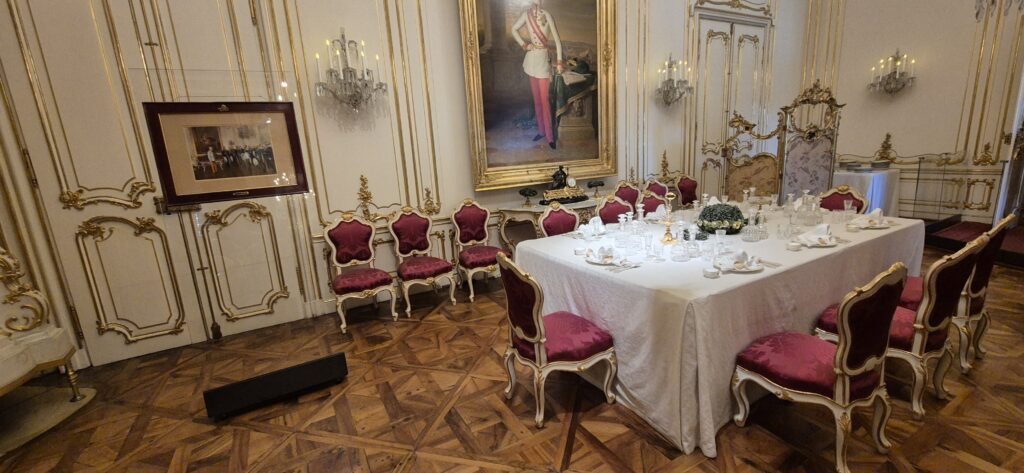 Zwiedzanie pałacu pozwala zajrzeć do prywatnego świata Habsburgów. Bilet kupuje się na określoną godzinę, jest też audio – przewodnik w języku polskim. Wejściówki w cenie 40 e za osobę kupiliśmy on -line aby uniknąć długiego oczekiwania w kolejce.