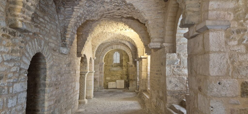 Na terenie opactwa znajduje się Krypta Karolingów – jedna z najstarszych części opactwa, pochodząca z IX wieku. Krypta była miejscem przechowywania relikwii św. Eugeniusza oraz służyła jako miejsce modlitwy i medytacji mnichów. Krypta zagrała również w filmie.