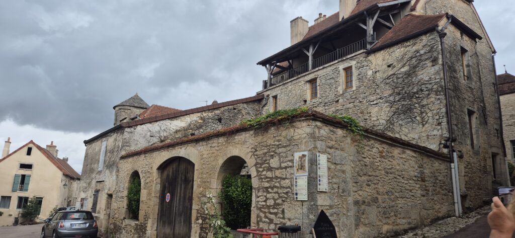 Na parkingu przed wjazdem do miasteczka, na którym należy obowiązkowo zostawić samochód znajduje się specjalna mapka z atrakcjami więc ruszamy na spacer. Nie sposób się zgubić bowiem wszystko jest oznaczone. Na trasie naszego spaceru mamy między innymi: Maison du Louis XII, Dom Wilka, Maison George, La Donaterie – klimatyczne domy z charakterystycznymi elementami architektury burgundzkiej. Każdy ma swoją historię i nazwę, która rozbudza wyobraźnię.