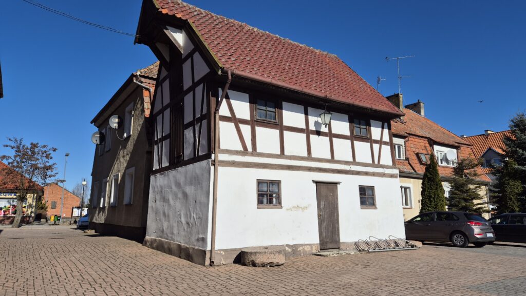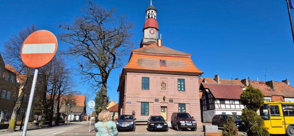 W centrum wioski znajduje się piękny ratusz z drewnianą dzwonnicą a obok spichlerz. Pierwotny budynek ratusza spłonął podczas najazdu Tatarów a w jego miejsce w roku 1772 wzniesiono nowy. Drewnianą wieżyczkę dobudowano w 1818 r. W ratuszu znajdowało się więzienie, bank, kasa miejska oraz pokoje burmistrza i rajców. Przed budynkiem posadzono trzy dęby o historycznym znaczeniu: pierwszy został posadzony w okazji zjednoczenia Niemiec w 1871 r., drugi z okazji zakończenia wojny francusko-pruskiej (1871 r.) a trzeci to Dąb Cesarki z 1888 r. Do dzisiaj zachowały się dwa.
