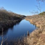 Kilometr od dworu znajduje się najbardziej wysunięty na północ most na Kanale Mazurskim. Mimo upływu tylu lat robi wrażenie i można tylko pofantazjować co było gdyby ta inwestycja została zakończona. Jakież to by było pływanie!. Stojąc na moście widzimy słupki graniczne – tutaj kończy się cywilizacja.
