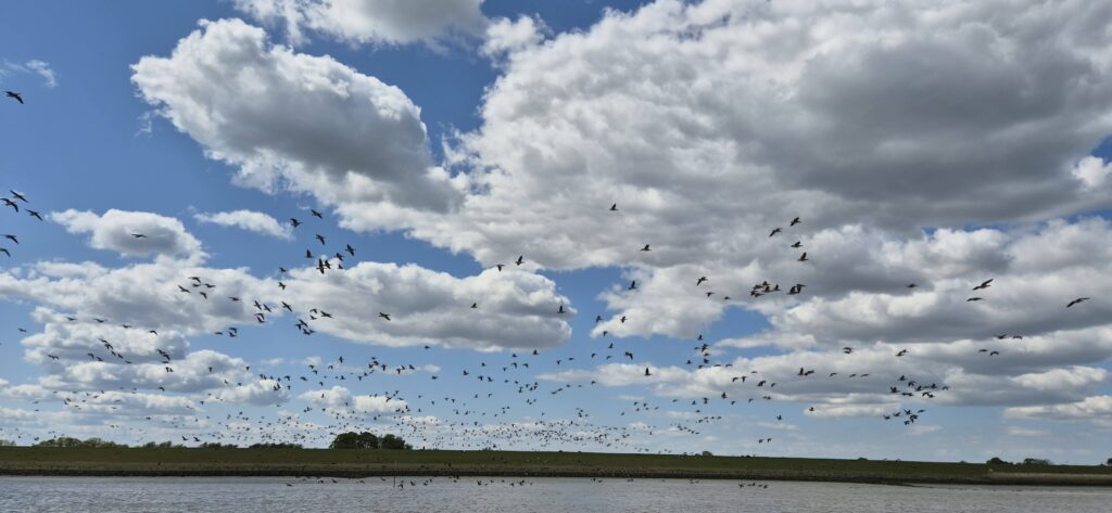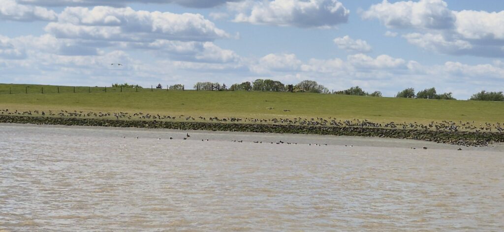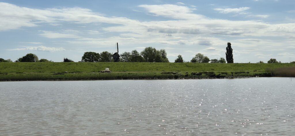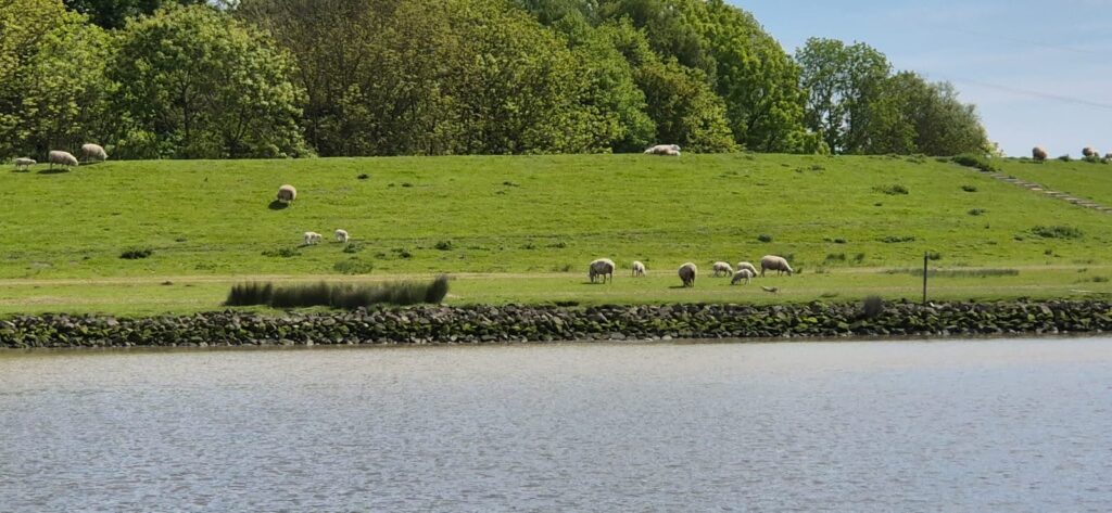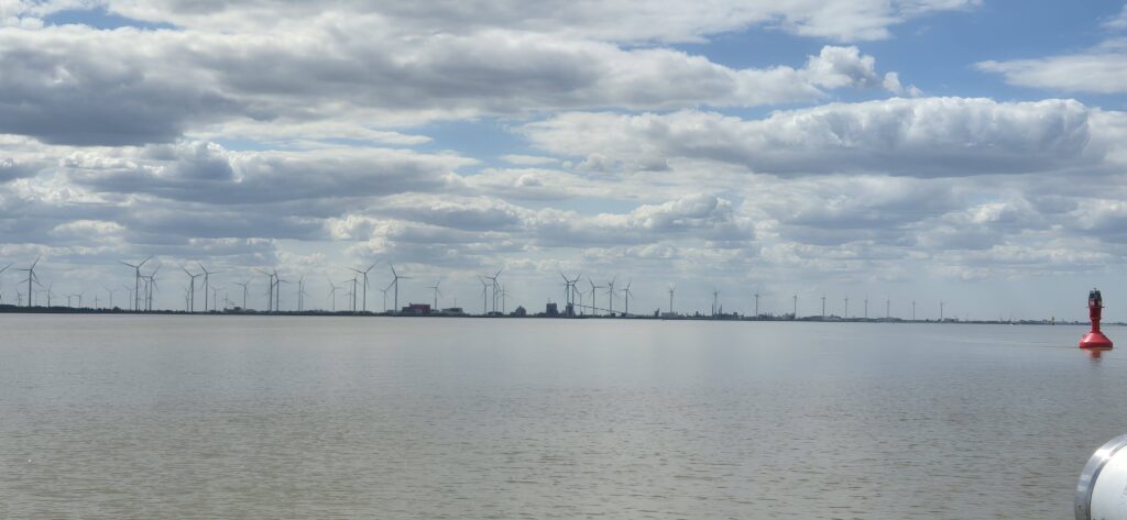 Wpływamy do zatoki Dollard, która o 14 jest jeszcze zalana- jej szerokość wynosi nawet do 7 km, ale kiedy zacznie się odpływ większa jej część wysycha. Od przejścia rankiem przez śluzę tor dla statków jest stale oznaczony przez czerwone i zielone pławy, jest też sporo kardynałek czyli oznaczonych miejsc niebezpiecznych.