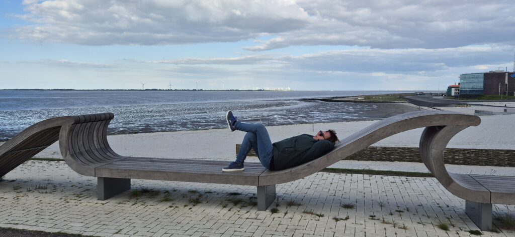 Wieczorny spacer z Ajrą pozwolił zobaczyć jak wygląda morze i plaża podczas przypływu. Jutro płyniemy do Groningen.