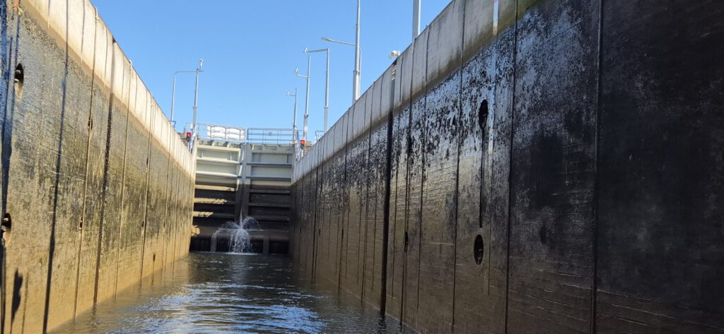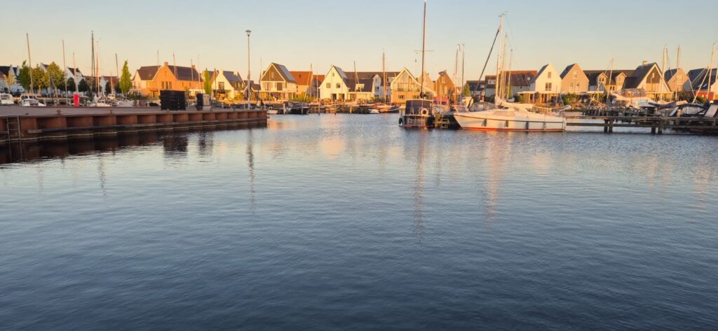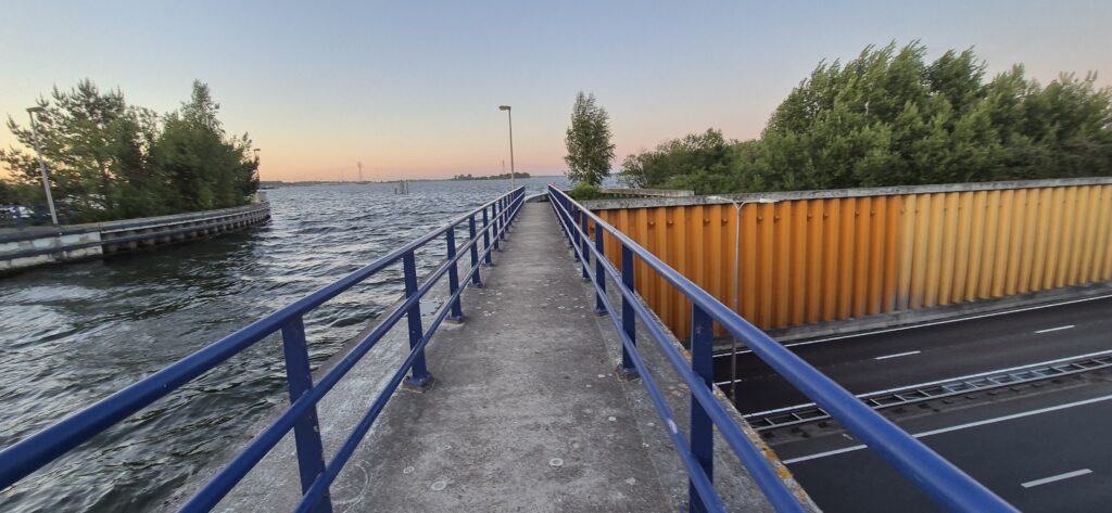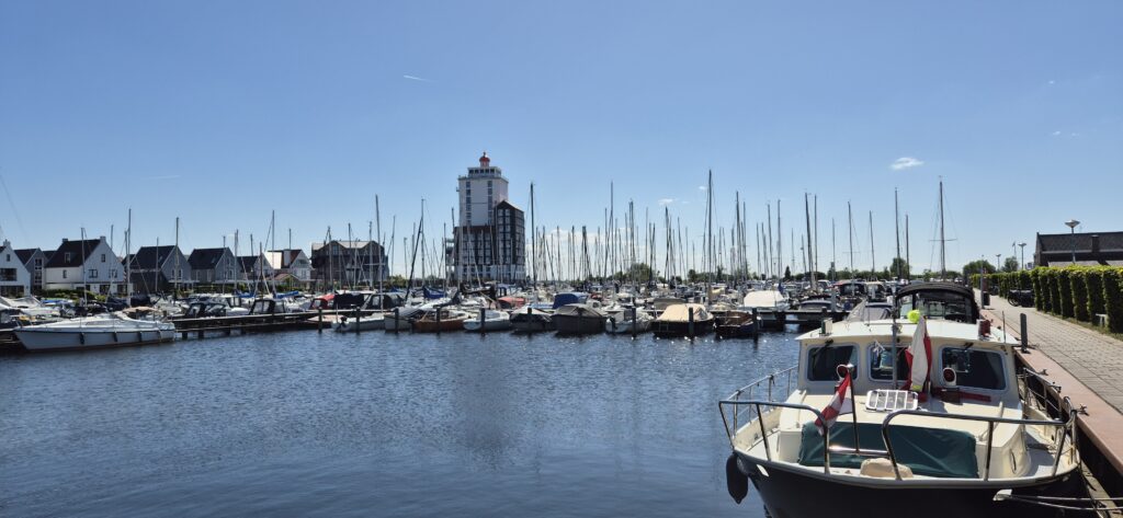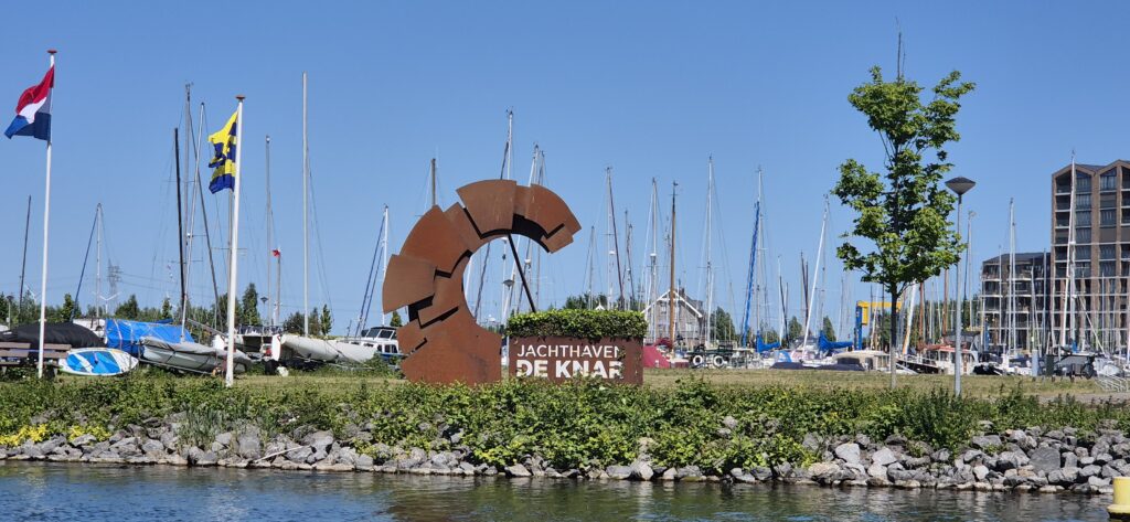Przed wejściem do portu WV Flevo Jachthaven de Knar mamy kolejną śluzę De Blauwe Dromer i podnosimy się o 5 metrów w górę . Jest bardzo mała i mogą do niej wejść łodzie o maksymalnym zanurzeniu 1,4 m. Port jest spory, ma wszystkie wygody a do centrum mamy kilkanaście minut spacerem. Ma też jeszcze jedną poważną zaletę – cena za nasz pobyt wynosi 18 e.