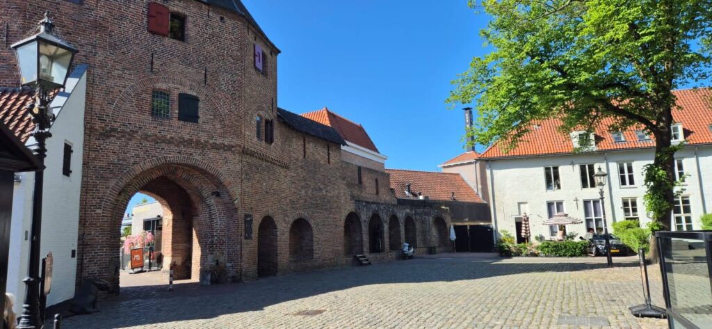 Mijamy ratusz położony na gwarnym placyku i zmierzamy do jedynej zachowanej bramy miejskiej Vischpoort, co oznacza po prostu rybę. Przez tą bramę transportowano ryby z i do miasta a na pamiątkę tych czasów na bruku wokół znajduje się mnóstwo metalowych rybek.