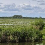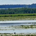 Ostatni odcinek kanałowy do jeziora Dróżno wynosi 6,5km i widokowo jest mało atrakcyjny. Trudy przeprawy rekompensują widoki na jeziorze. Jest ono stosunkowo płytkie – 1,5 m i mocno zarośnięte. Przed nami wytyczony tor wodny i ogrom ptactwa. Jest niesamowicie. To trzeba zobaczyć!!!