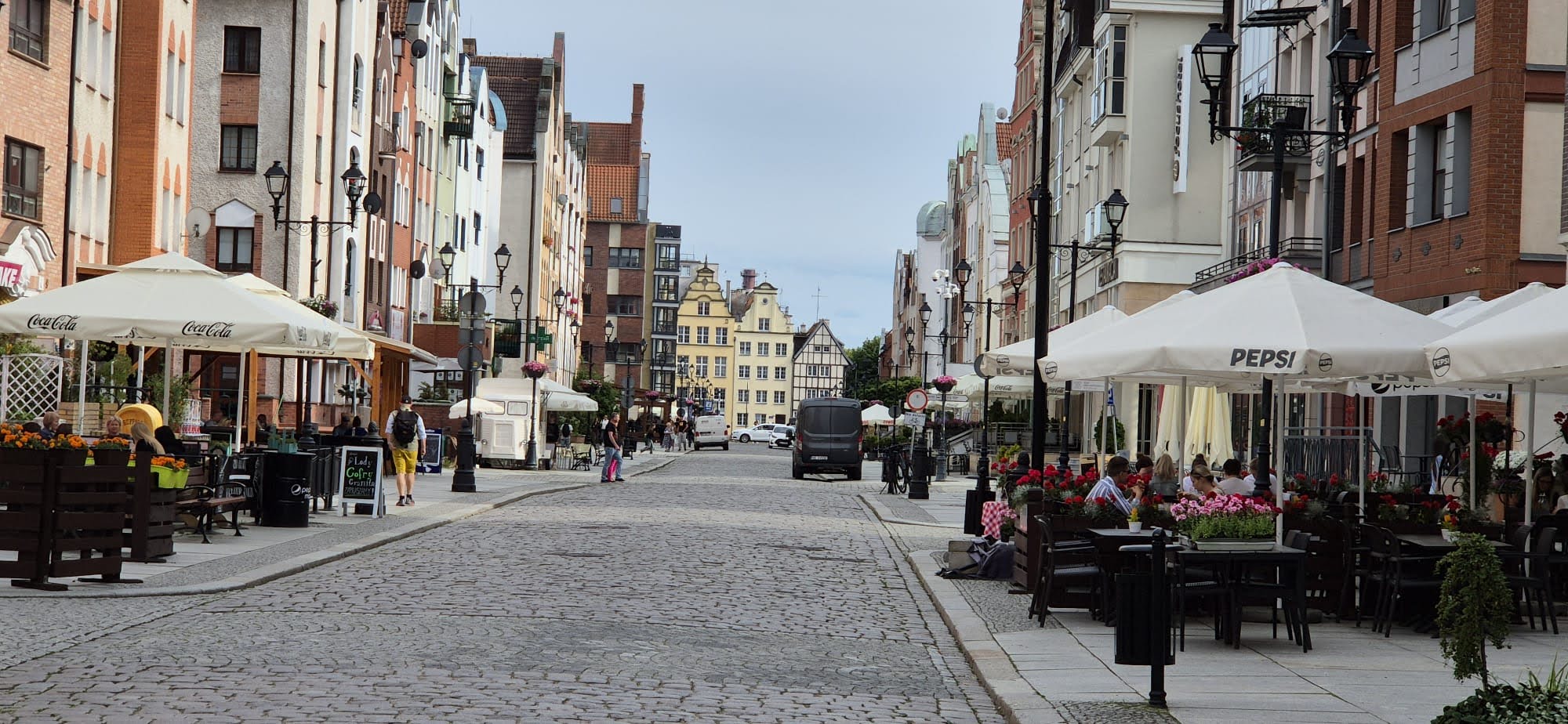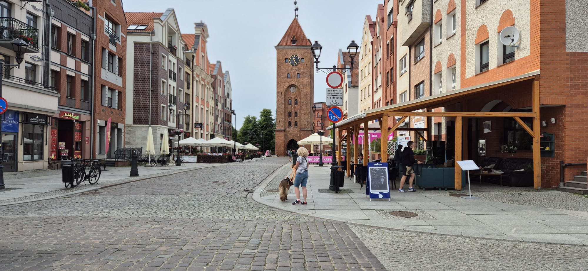 Przepłynęliśmy dziś 32 km, pokonaliśmy 100 metrową różnicę wzniesień, osiągnęliśmy maksymalny poziom stresu ( ja, mąż nie) i jest pięknie. Z portu do starówki mamy 2,5 km – idziemy na obiad a Ajra na zasłużony spacer. Ponieważ byliśmy w Elblągu rok temu nie skupialiśmy się za bardzo na zwiedzaniu. Zjedliśmy pyszny obiad we włoskiej restauracji na bulwarze, pospacerowaliśmy starówką. Informacja turystyczna znajduje się w Urzędzie Miasta. Wracamy na łódkę bowiem dziś początek Mistrzostw Europy. Kapitan przygotowuje strefę kibica, dziś początek Mistrzostw Europy, mecz Niemcy- Szkocja. Załoga zajmuje się praniem. Jutro płyniemy do Tolkmicka na Zalewie Wiślanym. I też będzie pięknie.