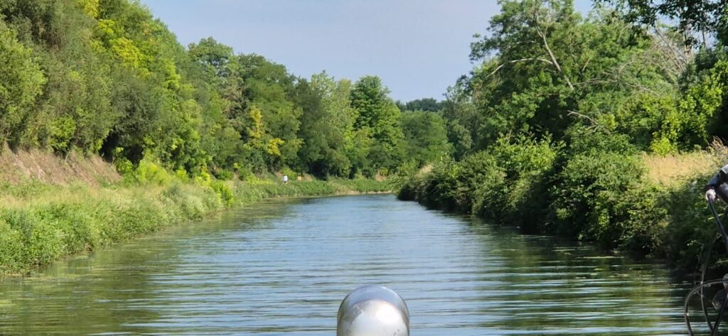 Wypływamy po dziewiątej czyli wyjątkowo późno bowiem czekaliśmy na telefon w sprawie akumulatora. Zakup nie doszedł jednak do skutku z uwagi na cenę – 360e to zdecydowanie za dużo więc rezygnujemy. Konsekwencją opóźnionego wyjazdu będzie przymusowy postój przed śluzą w czasie przerwy która trwa godzinę począwszy od 12:30.