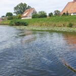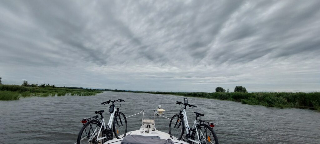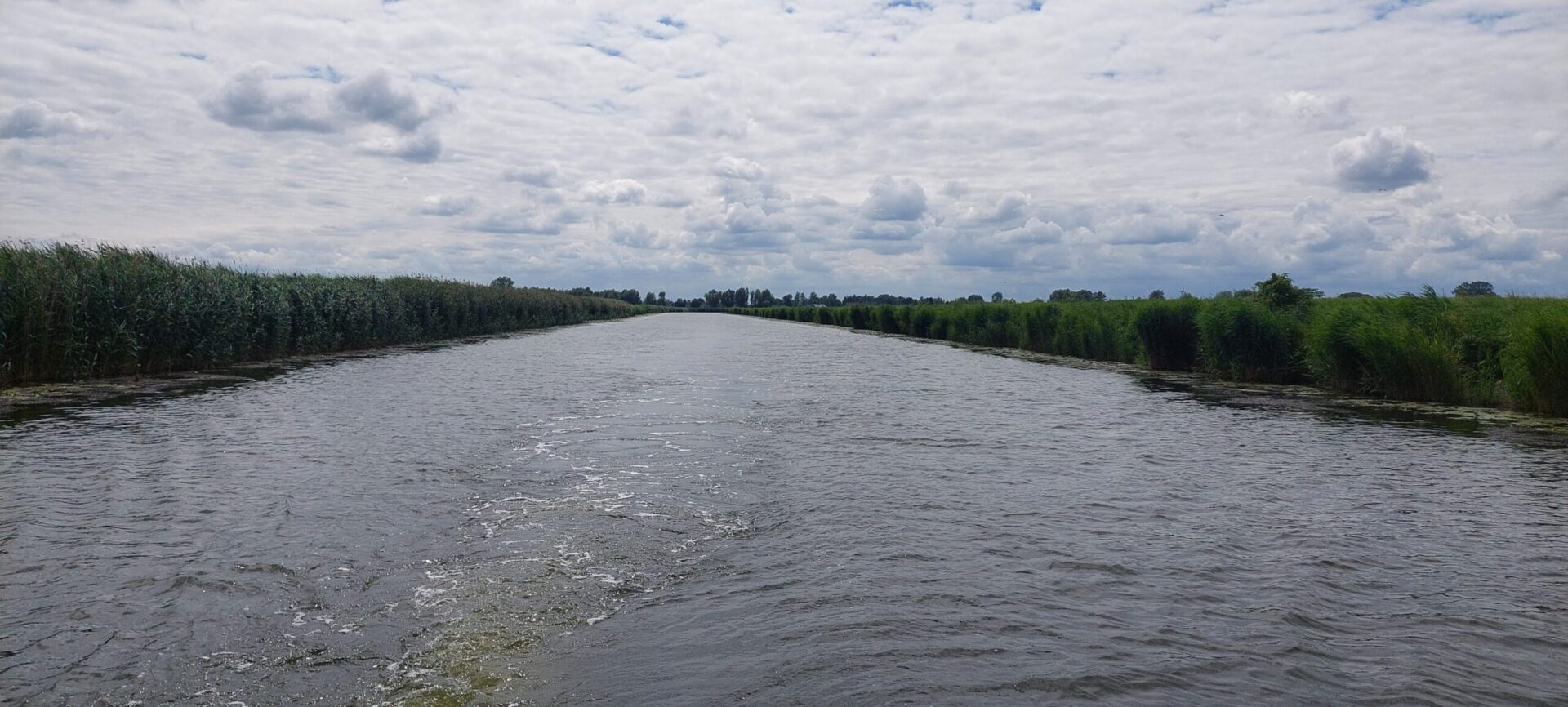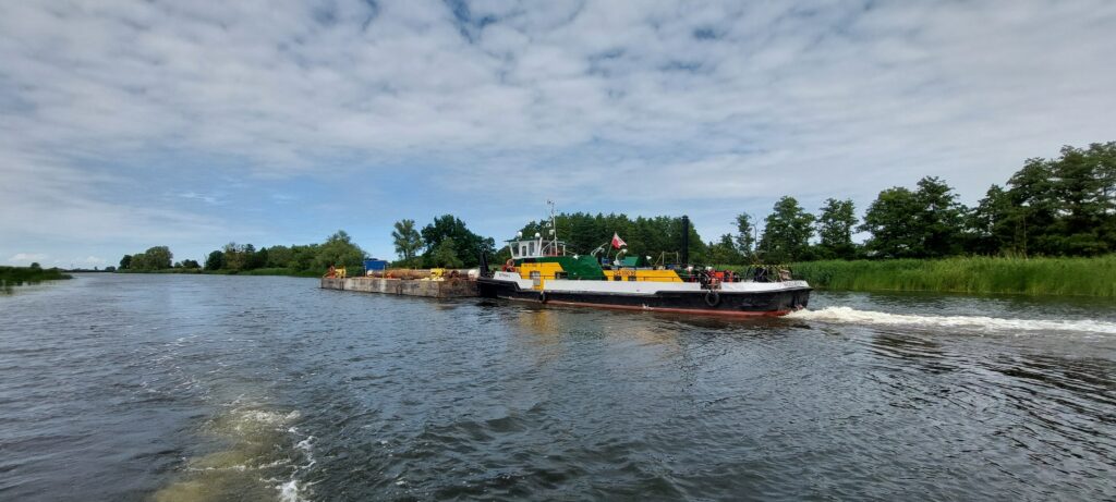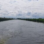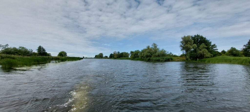Nogat jest piękny, tor wodny szeroki, tylko przy brzegach duża ilość roślinek. Poziom wody jest zaskakująco wysoki i wynosi 2 – 3 m. Po drodze mijamy dwie łódki czyli można by powiedzieć, że sezon się rozpoczął. Z Nogatu wpływamy do Kanału Jagiellońskiego.