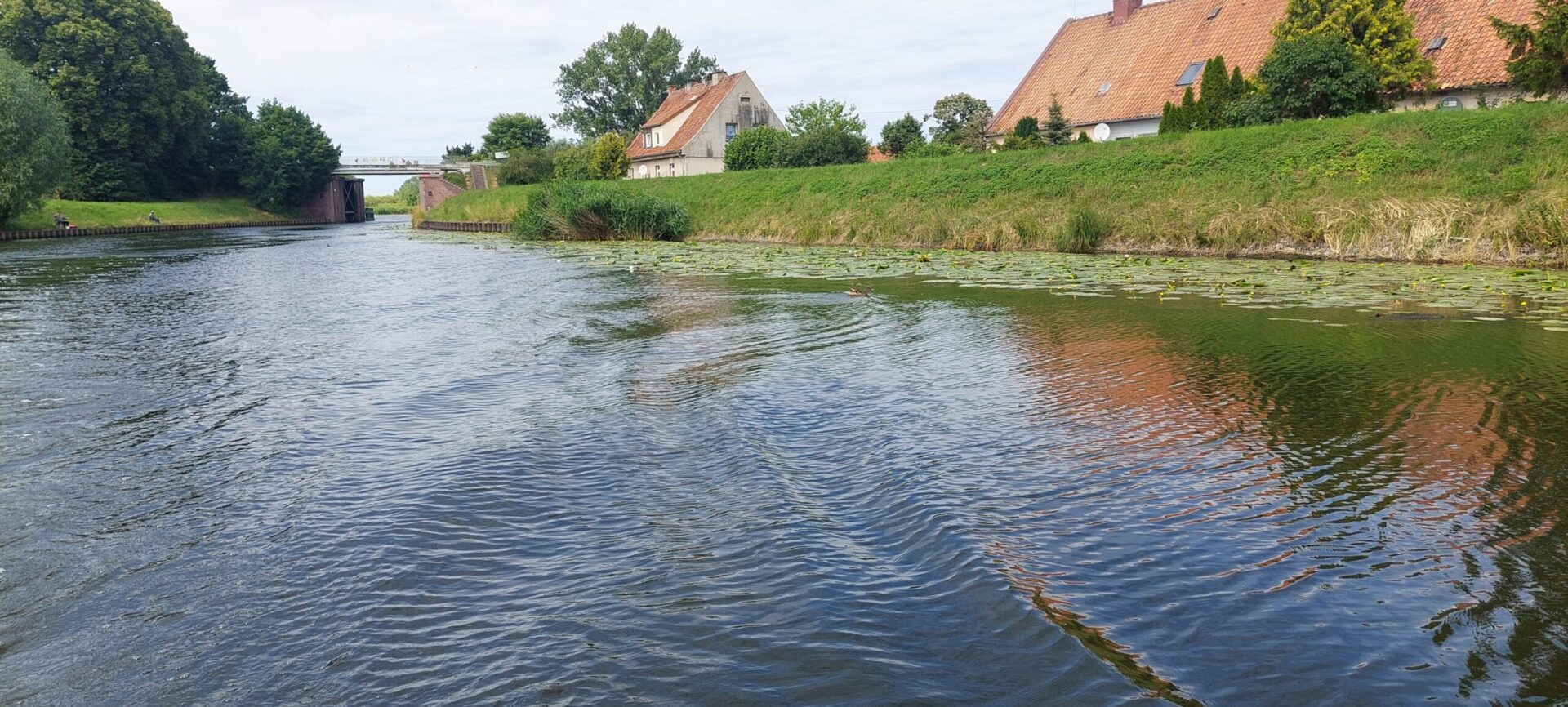Kanał jest jednym z najstarszych w Polsce, powstał w 1483 r. i ma długość 5,7 km.W miejscowości Bielnik przepływamy pod mostem i nieczynnymi już wrotami przeciwpowodziowymi – dawniej była tutaj śluza i jesteśmy na kanale. Większość brzegów jest porośnięta trzcinami, płynie się po nim bez większych problemów. Głębokość w środkowej części wynosi ponad 2 m. Po wyjściu z kanału wpływamy na rzekę Elbląg i po około 200 m lądujemy w marinie Jachtklubu Elbląg. Jest godzina 14.30.