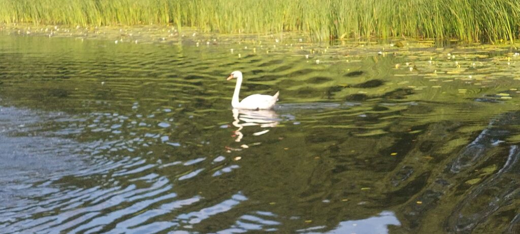 Jest piękne, praktycznie puste i bardzo głębokie (do 29m).W końcu można płynąc szybko. W trakcie budowy Kanału Elbląskiego lustro jego wody obniżono o 1,7m. Na lewym brzegu tętni życie. Liczne małe domki na wodzie z pomostami służące rybakom albo do cumowania łodzi. Ludzi znacznie więcej niż w czerwcu. Podobnie dużo wypoczywających w Osadzie Borsuka na końcu jeziora. Ilość plażowiczów utrudniałaby podpłyniecie do obleganego pomostu. Minęliśmy kilka łódek. Widać, że jest już lato.