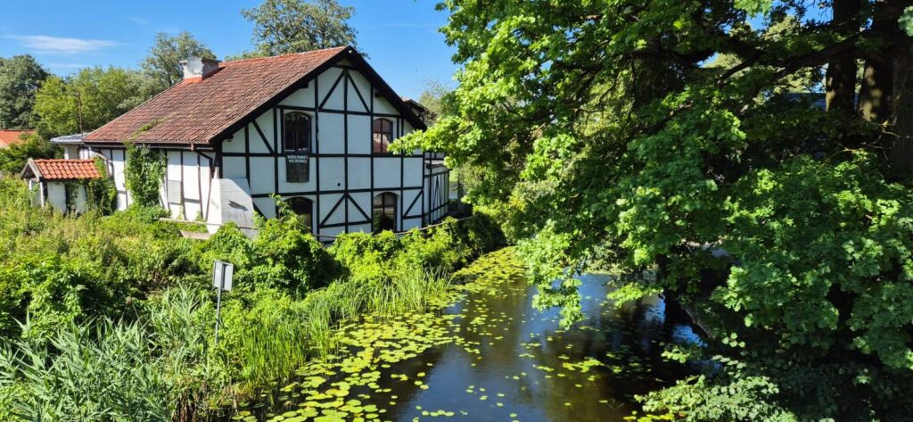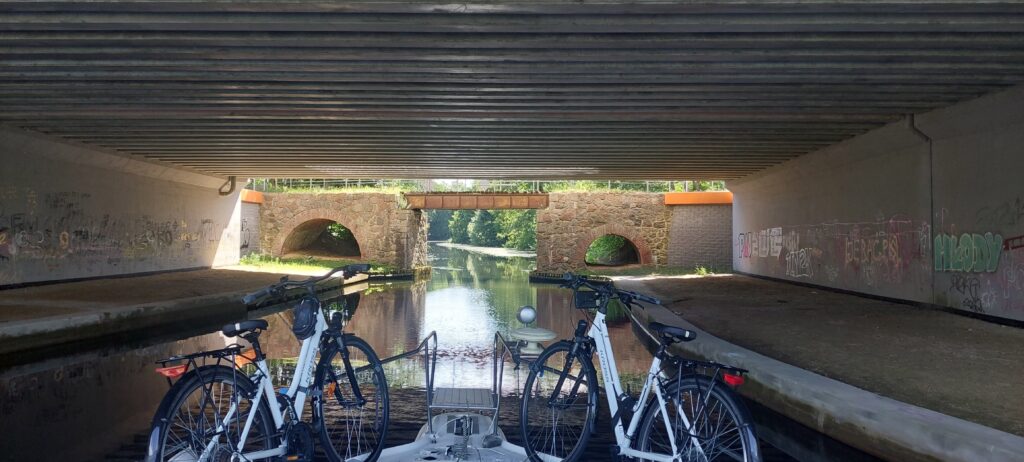 Do Miłomłyna płynęliśmy dzisiaj 5 godzin, pokonaliśmy 36km. Sądząc po tym co zaobserwowaliśmy oraz wypowiedziach na forach wybraliśmy dobry czas na ten rejs. W sierpniu poziom wody może byc jeszcze niższy, łatwo o uszkodzenie śruby. Jak piszą „wilki morskie” przejście 70cm housebotem stanowiło w ubiegłych latach duże wyzwanie, również przez pływające zielsko. A my mamy prawie metr! I podobno niemiłosiernie tną gzy.
