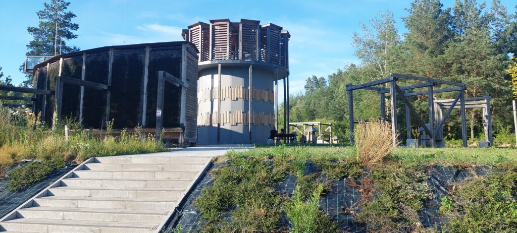 Miłomłyn trzeba odkryć bo z perspektywy przystani nie widać co ma do zaoferowania. Dziwiła nas spora ilość turystów na głównej ulicy i teraz już wiemy po co tu przyjeżdżają. Miłomłyn ma leczniczy klimat i funkcjonuje tu Leśny Park Uzdrowiskowy. Klimat służy szczególnie osobom potrzebującym terapii układu oddechowego (znowu pojawia się sosna taborska), neurologicznego, narządów ruchu. W parku jest tężnia, ścieżki piesze oraz rowerowe, wiaty, ławeczki. Na zagospodarowanej plaży można mile spędzić czas, jest też trasa leczenia spacerowego urządzona na starym nasypie kolejowym w poprzek jeziora Ilińskiego. Ma tutaj powstać Narodowe Centrum Badan Klinicznych, Diagnostyki i Terapii Padaczki Neurosphera Miłomłyn. Jedyne co nam bardzo przeszkadza to zakaz wprowadzania psów na teren parku.