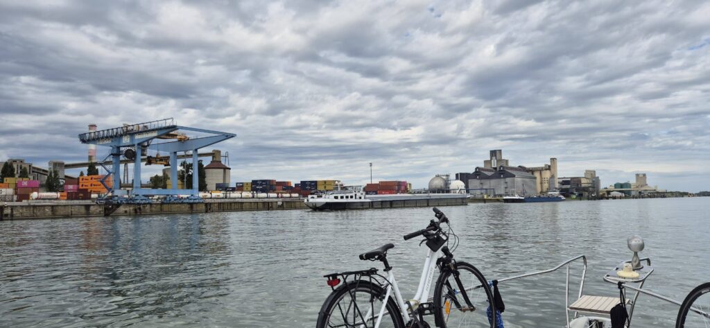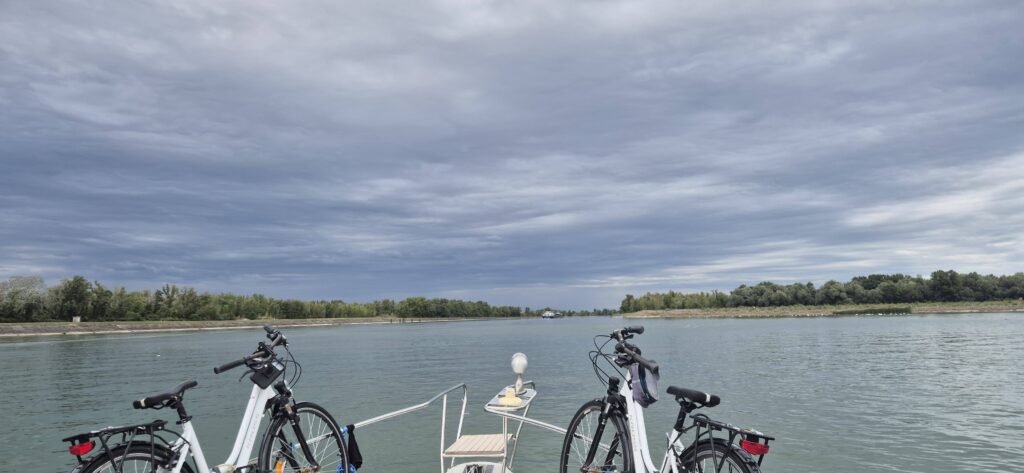 Pogoda od wielu dni nas nie rozpieszcza i w ciągu dnia stale popaduje na zmianę z krótkimi słonecznymi przerywnikami. Przed ostatnią śluzą zaczyna się burza i w strugach deszczu cumujemy w porcie I’lle du Rhin. O porcie a w zasadzie o Kapitanie przeczytaliśmy niezbyt pochlebne opinie w internecie, które potwierdziły się błyskawicznie. W rozmowie telefonicznej po 16 powiedział, że ma komplet i żeby płynąc do innego portu po stronie niemieckiej. Ostrzegawcze światła stroboskopowe błyskają, leje i słychać grzmoty więc przed 17 wpływamy i cumujemy. Wbrew temu co powiedział Kapitan w porcie jest sporo wolnych miejsc. Nie chciał chłop poczekać (wyczytaliśmy,że pracuje do 17 i chyba dla tego skłamał) więc obsługujemy się sami – na pomostach jest prąd, woda i mimo zamkniętej furtki znaleźliśmy też całkiem spory fragment trawnika na psią toaletę. Przypomina nam się ponownie określenie naszych Holendrów na taką sytuację – francuski akcent.