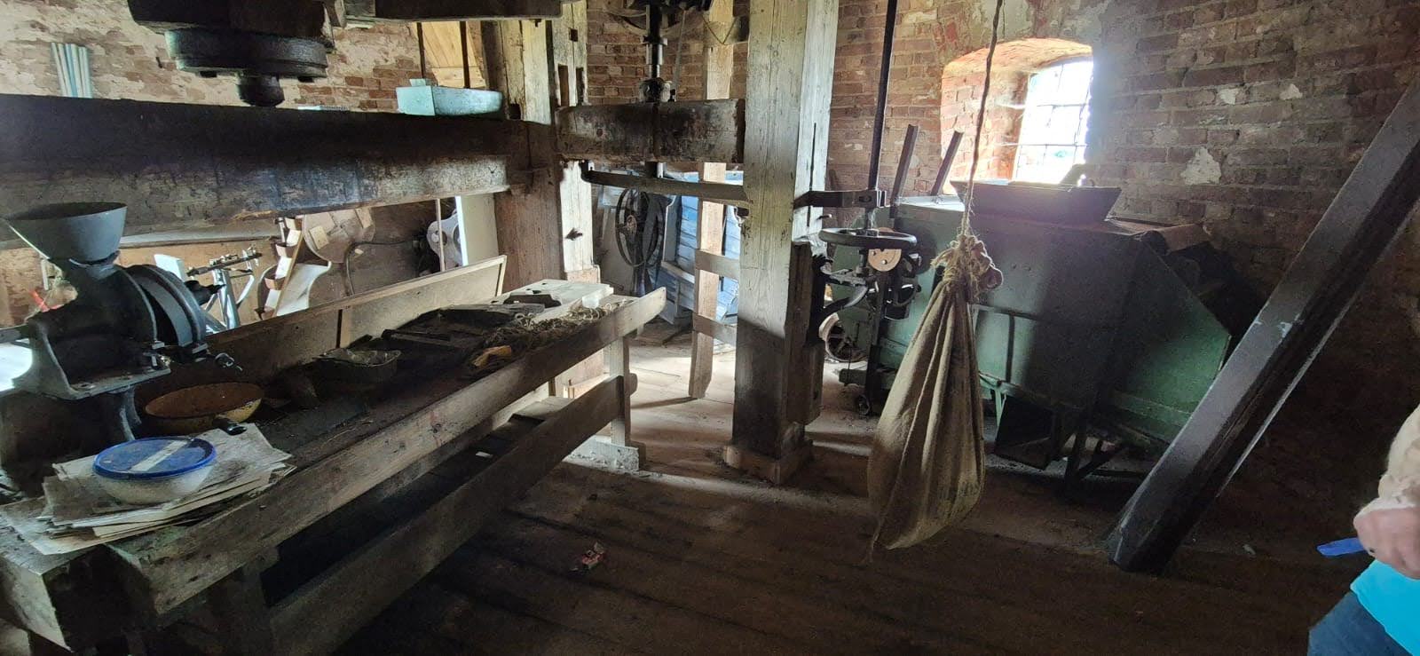 Wiatrak jak to wiatrak stoi na wzgórzu i mimo braku skrzydeł robi ogromne wrażenie. Zbudowano go w XIXw a jego konstrukcja sprawiała, że sam ustawiał się w kierunku wiatru. Przed wojną należał do niemieckiej rodziny Lowinów a po jej zakończeniu przeszedł na własność skarbu państwa i pracował do 1956 r. produkując śrutę dla zwierząt. Kiedy nastała mechanizacja uznano, że skrzydła należy zdjąć i tak młyn pracował nadal tyle, że ziarna mielono za pomocą śrutownika o napędzie elektrycznym. W latach 70 zaprzestano produkcji i młyn zaczął niszczeć. Zapewne podzieliłby los trzech innych w okolicy i został rozebrany gdyby nie Łękorskie Stowarzyszenie Ochrony Przyrody i Dziedzictwa Kulturowego. Dziś młyn ma wyremontowany dach, stropy, podłogi i nowe schody. W jego wnętrzu można zobaczyć wspaniałe eksponaty oraz mechanizm, który przetrwał 150 lat.