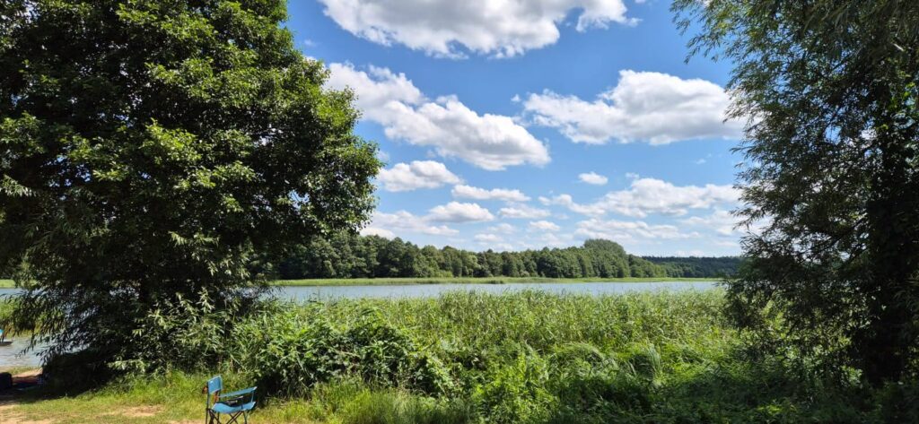 Środa to nasz ostatni dzień w Iławie – w czwartek wyciągamy łódź i wracamy do domu. Na dziś zaplanowaliśmy kameralne plażowanie i zwiedzanie. W Łąkorzu oddalonym o 20 km od Iławy znajduje się zabytkowy wiatrak holenderski, stara kuźnia oraz małe lokalne muzeum. Zwiedzanie możliwe jest po wcześniejszym umówieniu się z kustoszem Panem Janem Ostrowskim: 509 980 320. Na plażę nad jeziorem Łąkorz docieramy bez problemów. Jest nowy pomost, boisko do siatkówki, długie łagodne zejście do wody i czyściutka woda. Ajra może schronić się w cieniu drzew. Jest bardzo kameralnie.