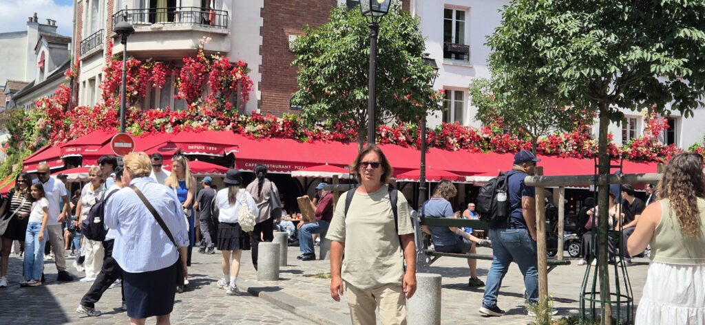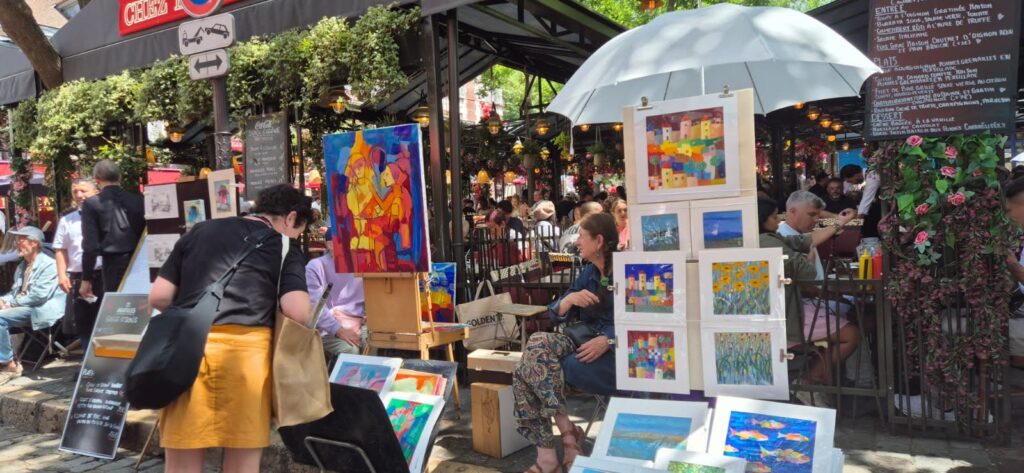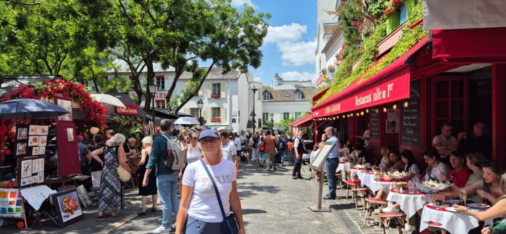 Na naszej trasie mamy kolejno Plac du Terte, który oferuje liczne kawiarnie i restauracje usiane wokół placu oraz zbiorowisko malarzy pracujących „na żywo”. W większości są to portreciści, którzy zarabiają na turystach, rysując ich karykatury lub upiększone portrety, ale znajdą się też i wyjątki, np. malujący martwą naturę czy pejzaże miejskie. Plac to miejsce, które wygląda jak ten idealny Paryż, który wielu z nas sobie wyobraża na podstawie filmów i starych fotografii, który chcielibyśmy ujrzeć podczas swojej wyprawy. Miły dla oka, ruchliwy na niektórych uliczkach ale wystarczy skręcić w prawo lub w lewo i już spokojny i cichy.