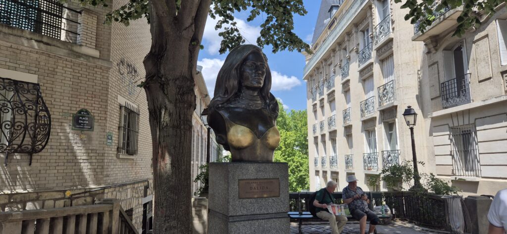 Wspinamy się po schodkach aby zobaczyć posąg sławnej francuskiej artystki Dalidy – pogłaskanie jej piersi ma podobno przynieść szczęście. Każdy chce zaznać w swoim życiu szczęścia więc Dalida na biust mocno poprzecierany. Nie wszyscy znają historię jej nieszczęśliwego życia ale piosenkę „Paroles, paroles” słyszał chyba każdy.