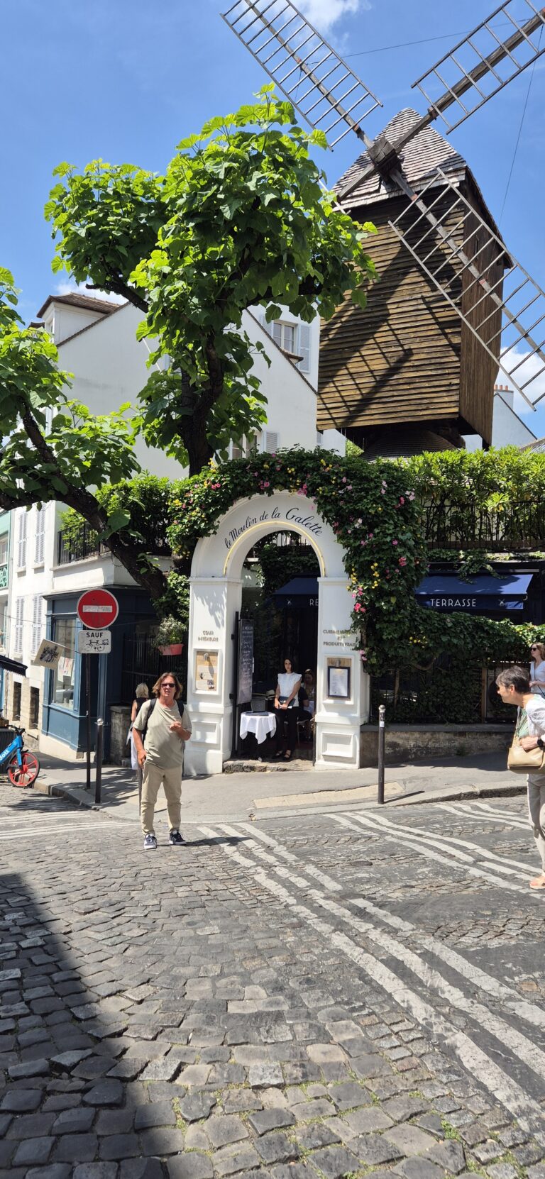 Lokalizację drugiego wiatraka można łatwo namierzyć po ilości turystów robiących fotki. Nie będziemy gorsi i też pstrykamy. Sam budynek za dnia nie powala ale jest magia miejsca. W czasie belle epoque tancerki kankana przyciągały doń bohemę z całego Montmartre’u. Wiatrak został wybudowany w 1885 roku, a potem, w 1900 roku został przekształcony w salę do tańca. Dopiero później zagościł tu kabaret, który funkcjonuje po dziś dzień.