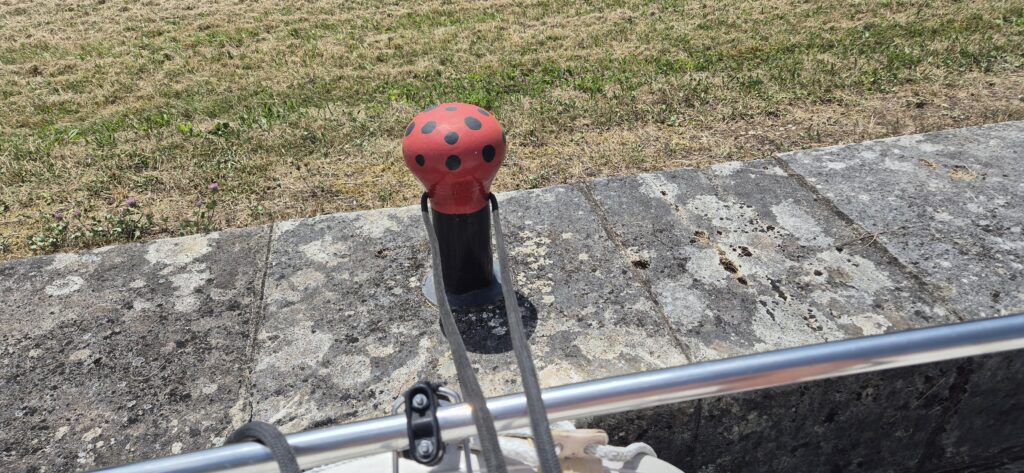 Kiedy wydaje nam się, że zbliżamy się do końca tej przeprawy i od portu dzielą nas zaledwie dwie śluzy obsługa informuje nas, że kończą na dzisiaj pracę. Są nieubłagani, nie docierają do nich żadne argumenty i tym oto sposobem lądujemy na kanale za śluzą nr 16 bez prądu i wody. Polerów do cumowania też nie ma więc należy sobie wbić samemu stosowne paliki. Ku naszej radości udaje się nakłonić obsługę by udostępniła nam prąd budynku śluzowego.. I to koniec naszego szczęścia, mamy uszkodzony kabelek przy wtyczce który po podłączeniu i kontakcie z kapitanem wywala różnicówkę i już nikt nie jest w stanie nam pomóc bo obsługa odjechała. Dobrze, że Kapitan chociaż żyje. Pan śluzowy przekazał nam jeszcze jedną ważną informację. Na każdej śluzie znajduje się dziwny, wysoki na 1,2 m brązowy grzybek. Po zdjęciu jego kopuły uwidacznia się gniazdko z bezpiecznikiem i można skorzystać z prądu nocując w okolicy śluzy. Niestety po naszym zwarciu na grzybku również nie było prądu. Nadchodzi burza, która choć na parę godzin obniży temperaturę powietrza a „07 zgłoś się” wyrusza z misją do podejrzanego ośrodka na Mazurach. Zasypiamy w nie najlepszych nastrojach ze świadomością, że akumulatory do sterów strumieniowych nie będą naładowane. O resztę się nie martwimy. Nasze „hotelowe” zaopatrzenie to 400 amperogodzin. Nie mamy zbyt wielu zdjęć z tego dnia ale można te które są pomnożyć raz czterdzieści. Byliśmy zbyt zajęci…