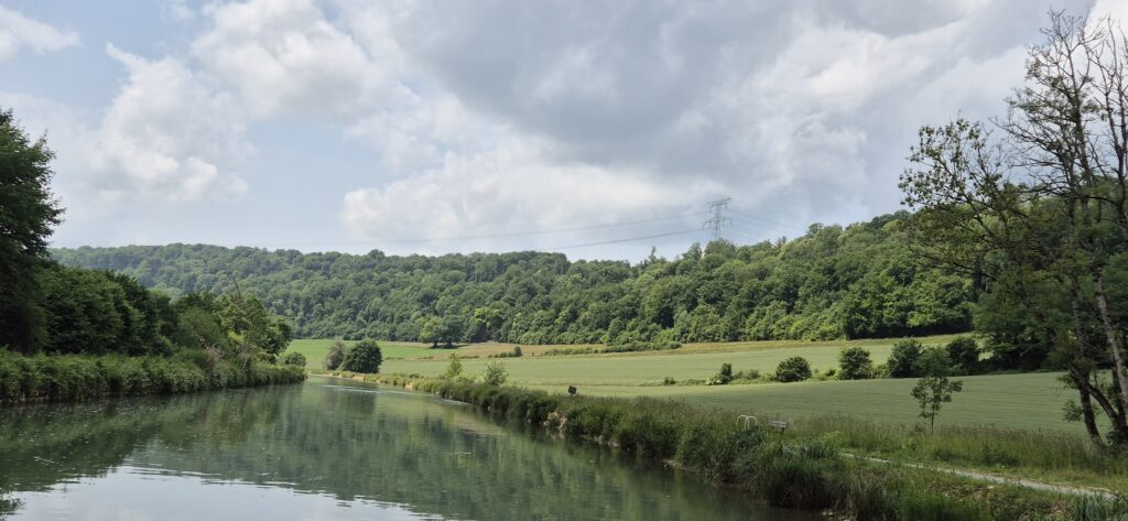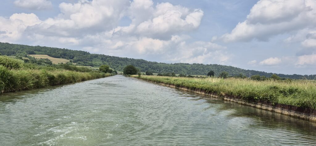 Wypływamy o 8:30 czyli zgodnie z planem. Pczątkowo płyniemy Mozą, następnie kanałem Mozy by ostatecznie wpłynąć na Kanał Ardeński. Większość trasy to spokojne odcinki z łąkami, polami i lasami Ardenów. Wszystkie śluzy działają na pilota, średni czas przejścia śluzy wynosi 15-20 minut. Można rzec, monotonnie. Dzisiejszy odcinek pokonujemy w 7 godzin.
