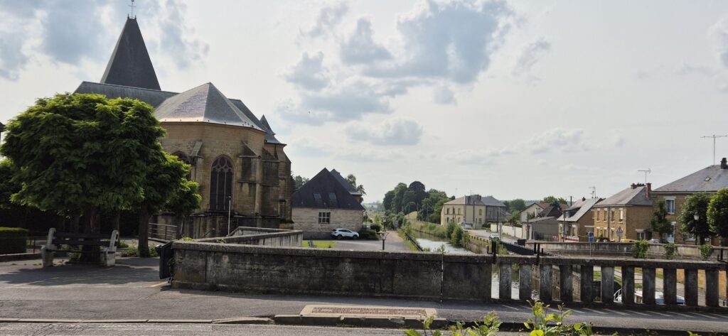 La Chesne leżało kiedyś na trasie pielgrzymów do Santiago de Compostela. W średniowieczu przyjmowano tutaj wiernych zmierzających do Hiszpanii. Kościół obok którego cumujemy nie przypadkowo nosi imię św. Jakuba. Tuż obok na skwerze znajduje się kamienny krzyż z XVI w. Są sklepiki, dwie restauracje i w zasadzie nic więcej.