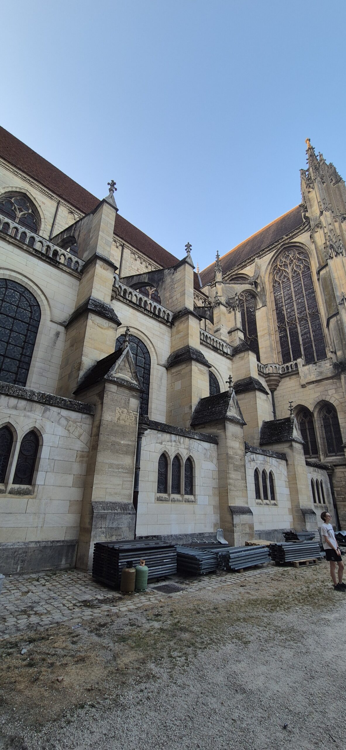 Na spacer i zwiedzanie wyruszamy dopiero o 19:30. Nad miastem króluje Katedra św. Szczepana – pierwsza gotycka świątynia na świecie budowana w latach 1135-1164. Jest ogromna, trwa remont (znowu mamy pecha) i co zaskakujące, jest cała obudowana małymi domkami i kamieniczkami. Wygląda to tak jakby ktoś podoklejał do niej małe budynki. Niestety wieczorem jest już zamknięta ale postaramy się zobaczyć jej wnętrza rankiem.