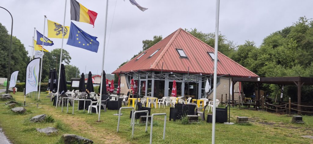 Po przejściu ostatniej śluzy gigant stajemy w uroczej marinie Port de plaisance de Ittre. Przemiły bosman mimo silnego deszczu czeka na na nas na pomoście, wita polskim „dzień dobry” i pomaga zacumować. W swojej tawernie ma wielu polskich klientów (głównie rowerzystów) i zna sporo polskich słów. Zaprasza nas na domowe spaghetti bolognesse a my nie odmawiamy. Marina jest spokojna, miłe zielone otoczenie a w cenie 15 e mamy darmowe sanitariaty i wodę a prąd jest na wrzutki. Ile nas będzie kosztował zobaczymy rano. Próba czajnika zakończyła się fiaskiem, gotujemy na kuchence turystycznej.
