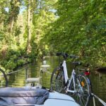 Po wyjściu z tunelu po lewej stronie znajduje się przystań oznaczona na liście Gościńców Kanału Elbląskiego. I to by było na tyle… Na przystani jest nowe skrzydło pomostu przy którym można zacumować ale nie ma knag więc wiążemy się do bezpośrednio do pomostu. Nie ma słupków z prądem i wodą. Mamy na szczęście dwa przedłużacze więc ciągniemy kabelki jakieś 60m do budynku gdzie możemy się podłączyć do prądu. Na wodę nie ma szans, więc nie pozostaje nam nim innego jak sięgnąć do zapasów zgromadzonych pod pokładem. Mamy 60l. Ośrodek jest bardzo urokliwy i kojarzy się z ośrodkami zakładów pracy z lat 70. Porucznik Borewicz mógł tu na przykład bywać. Ale jest też ładna plaża, boisko do siatkówki, miejsce na ognisko. Jest i tawerna niestety jeszcze zamknięta. W międzyczasie podpływa jeszcze jedna łódź poszukująca mariny i tak mamy sąsiadów, z którymi po żeglarsku dzielimy się prądem. Do restauracji w hotelu Anders mamy 1,5 km, jest późno więc jemy parówki. Jaka marina taka kolacja.
