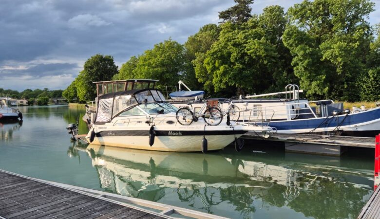 10.06.2025 Dormans- La Ferte-sous-Jouarre: odległość 65 km, 6 śluz, czas 8,5 h. Mamy przed sobą długi dystans i wypływamy lekko zaniepokojeni bowiem stojący po sąsiedzku Niemiec przekazał nam informacje, że  była awaria na zaporze w Meaux i Canal de Mealux a Chalifert omijający nieżeglowną część Marny jest nieczynny z powodu niskiego poziomu wody. Szukamy informacji …