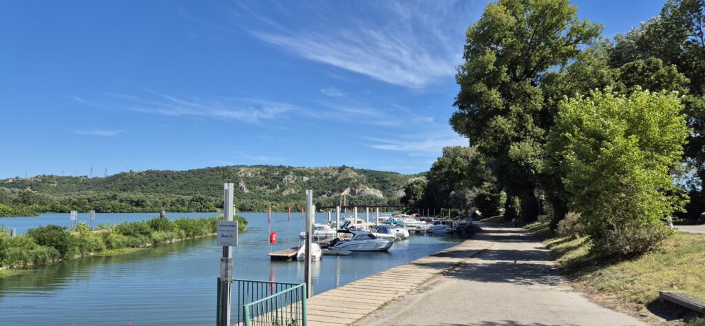 Port w Viviers, nasz dzisiejszy cel jest osłonięty od nurtu Rodanu, tor podejścia jest oznaczony i należy się go ściśle trzymać. Ma kilkanaście miejsc cumowniczych oraz nabrzeże dla dużego wycieczkowca. Jest prąd, woda, sanitariaty i mała restauracja, Cena postoju wynosi 19,40 e. W niewielkiej odległości od przystani znajduje się urocze miasteczko i kiedy słabnie upał ruszamy na zwiedzanie.
