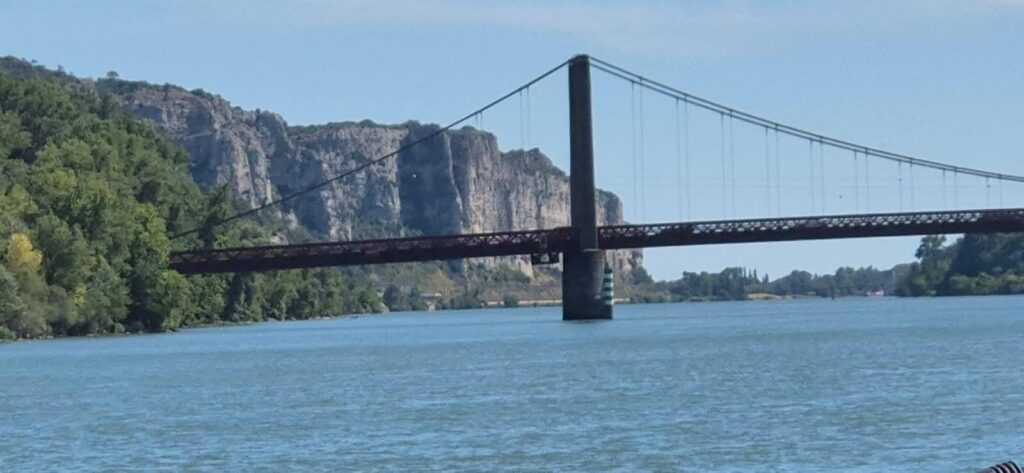 Zarówno wejście jak i wyjście z portu w Valence wymaga uwagi bo tor jest wąski i sporo jest niebezpiecznych miejsc oznaczonych czerwonymi słupkami. Wieje też silny wiatr. W zasadzie od wejścia na Rodan cały czas wieje. Dolina jest dosyć wąska i otoczona przez górskie masywy, taka topografia działa jak naturalny lejek, który skupia i przyśpiesza wiatr. Najsłynniejszy Mistral jest szczególnie dokuczliwy jesienią i zimą. Przy śluzie Bourg-les-Valence znajduje się duża elektrownia wodna. Gdy została uruchomiona w 1968 r. była jedną z najnowocześniejszych w Europie. Aby nie czekać na otwarcie śluzy należy się skontaktować z obsługą 20 min wcześniej – zwiększa to szanse na to, że po dopłynięciu wrota będą otwarte. Mijamy kolejną elektrownię jądrową zlokalizowaną nad Rodanem: Cruas-Meysse. To jedna z największych elektrowni we Francji a jednocześnie najlepiej wkomponowanych w krajobraz. Rocznie produkuje energię równą zapotrzebowaniu 4 milionów gospodarstw domowych.