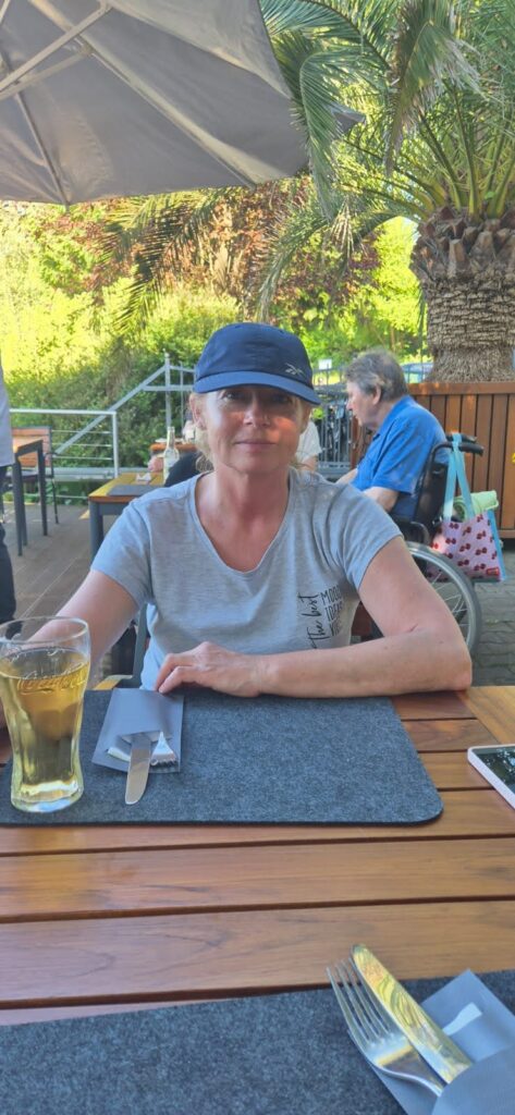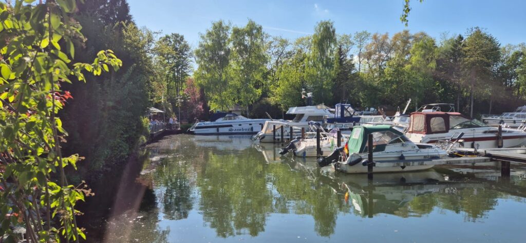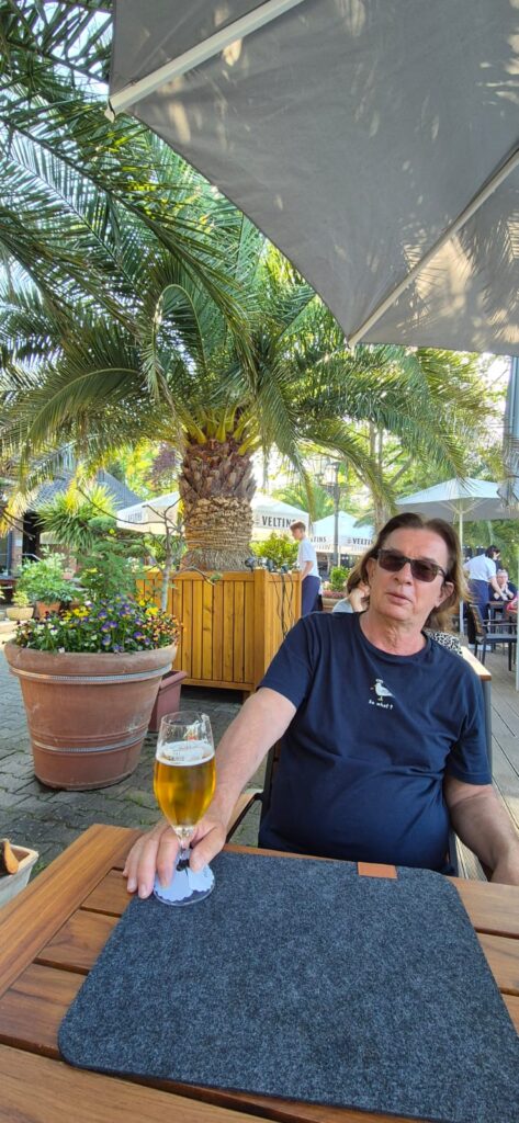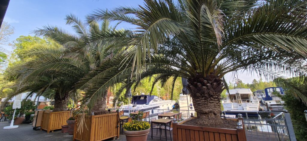 Marina Yachthafen Heidanger jest spora, stacjonuje tu wiele dużych jednostek rezydenckich, jest przepiękna, bardzo popularna w okolicy restauracja oraz całe niezbędne zaplecze. Opłata wynosi 17,6 e, prysznice są na wrzutki (1 e), woda 1 e za 100 l, prąd i władający językiem angielskim hafenmeister w cenie. Jest bardzo ciepło (temperatura w ciągu dnia wynosi 27 st) więc postanawiamy zjeść w restauracji. Jest dużo gości i czas oczekiwania na posiłek ciągnie się niemiłosiernie. Ceny są wysokie bowiem za danie trzeba zapłacić ponad 30 e. Cóż, obiad pod palmami kosztuje. Decydujemy się na wariat ekonomiczny czyli kindermenu, które okazuje się być dużą porcją zadowalającą nas w zupełności.