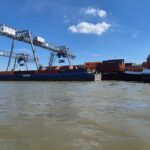 A teraz trochę o barkach. Każda z nich wyposażona jest w niebieską tablicę przymocowaną z prawej strony sterówki. W zwykłych warunkach barki mijają się lewymi burtami jak samochody, tablice ustawione są wówczas poziomo i z innego statu są niewidoczne. Jeżeli jest konieczność wyminięcia jej po prawej stronie wówczas sternik wystawia tablicę pionowo i jest to widoczny dla innych komunikat. My jak na razie nie mieliśmy takiej sytuacji. Na każdą tonę barki przypada jeden koń mechaniczny a często mają jeszcze rezerwę. Barki, które nie mają radarów nie pływają w nocy, cumują często przymocowane jedna do drugiej. Praktycznie całe nabrzeże Mittellandcanal ma metalowe wzmocnienie brzegów przy którym są polery do mocowania oraz wiele specjalnych miejsc wytyczonych do postoju tylko barek.