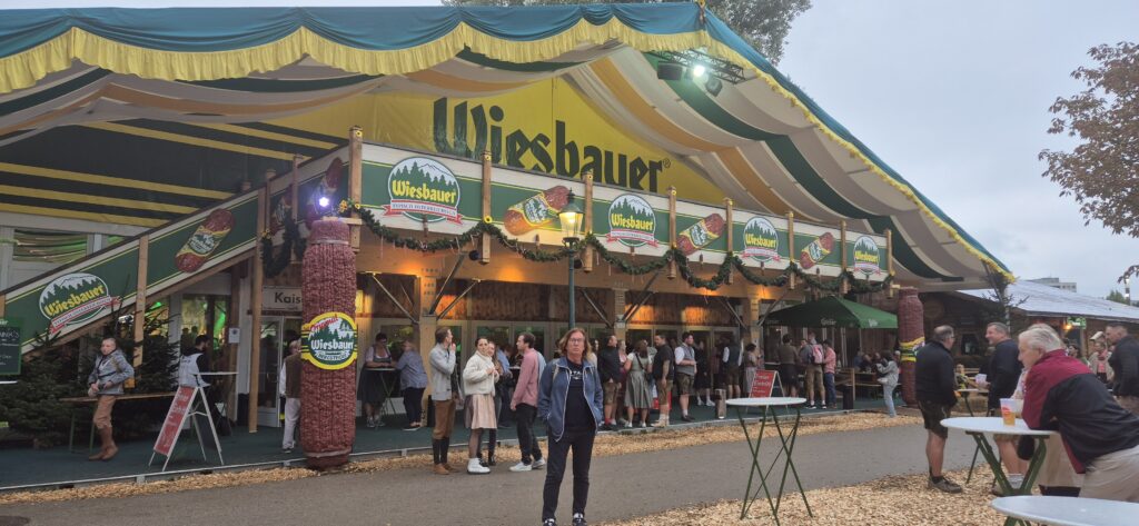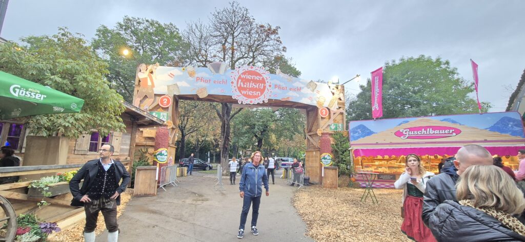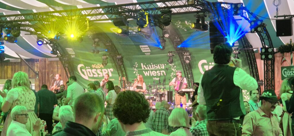 Hotel mamy na Praterze więc miejsce jest idealne. Ruszamy na mały rekonesans i od razu trafiamy na Wiener Kaiser Wiesen czyli wiedeńskie wydarzenie w stylu Oktoberfestu. W pawilonach festynowych odbywają się występy kapel i oczywiście pije się piwo. Zamawia się je wyłącznie w litrowych kuflach a do piwka można zamówić coś do zjedzenia.