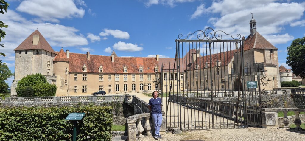 Skoro jesteśmy uwięzieni nie pozostaje nam nic innego jak wykorzystać maksymalnie samochód – zwiedzamy wszystko co się da w promieniu 60 km od naszego portu. Dzisiaj zaczynamy od Chateau de Bourbilly. Zamek jest piękny ale otwiera swoje podwoje dla zwiedzających dopiero 15 lipca więc tylko zerkamy na niego z daleka. Szkoda, bo wygląda okazale.