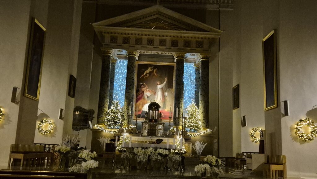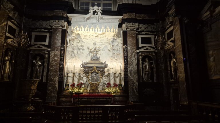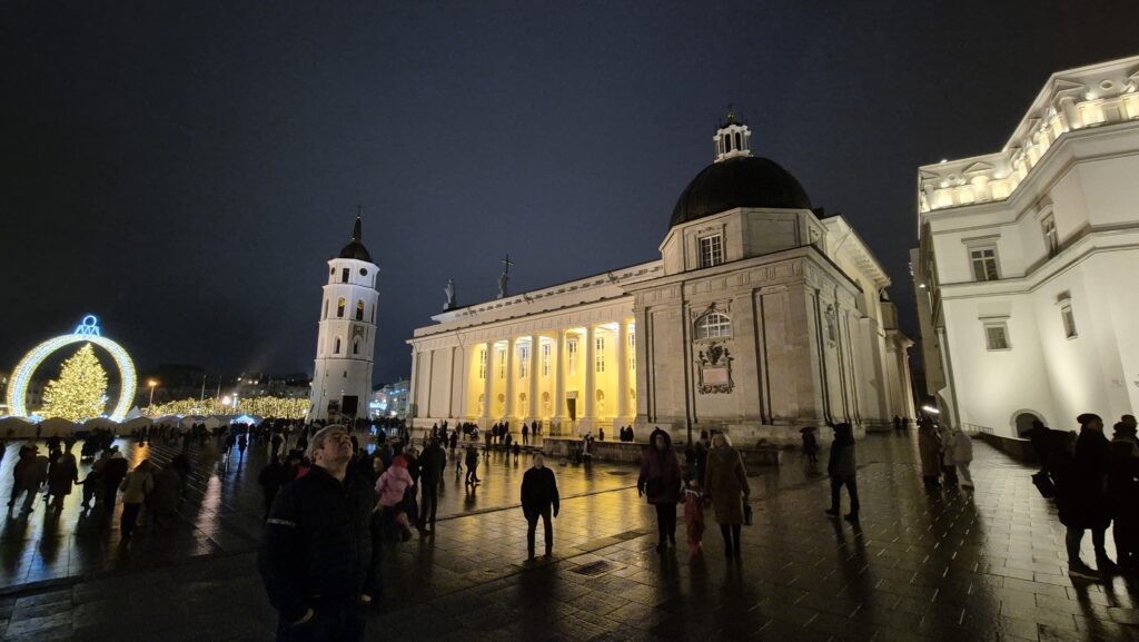 Są też w katedrze katakumby a w nich szczątki Aleksandra Jagiellończyka, żony Zygmunta Augusta, Barbary Radziwiłłówny oraz serce Władysława IV Wazy. Na wielkim placu przed kościołem panuje iście świąteczna atmosfera. Jest olbrzymia choinka, stragany z łakociami i masa ludzi.
