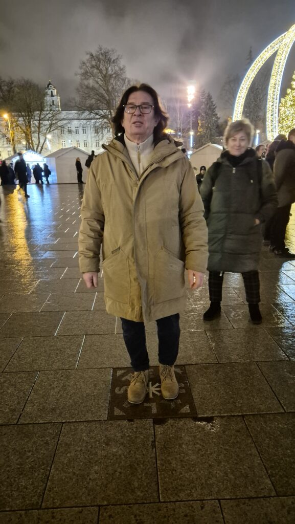 Obok dzwonnicy, na którą się nie wdrapujemy bo jest ciemno rozpoczynamy poszukiwania płytki Stebuklas. Płytka powstała na pamiątkę żywego łańcucha utworzonego przez blisko milion ludzi w 1989 r. Łańcuch ciągnął się przez Litwę, Łotwę, Estonię i miał symbolizować chęć odłączenia się od związku radzieckiego. Zgodnie z legendą, należy stanąć na płytce, pomyśleć życzenie i trzy razy się obrócić. Po odstaniu w kolejce robimy wszystko jak należy i od teraz czekamy sobie spokojnie na spełnienie.